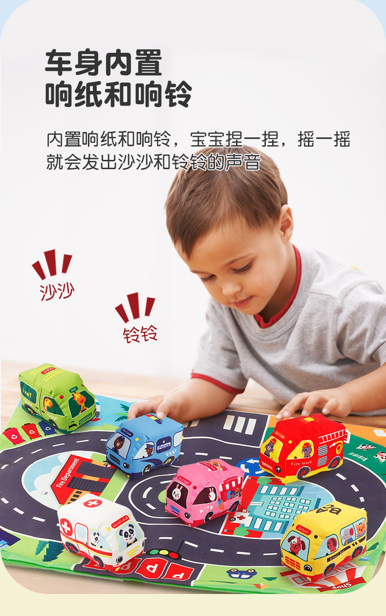 Кросс-бордерная игрушка для младенцев, тканевая машинка с сумкой для хранения, погремушка, игрушка для транспорта