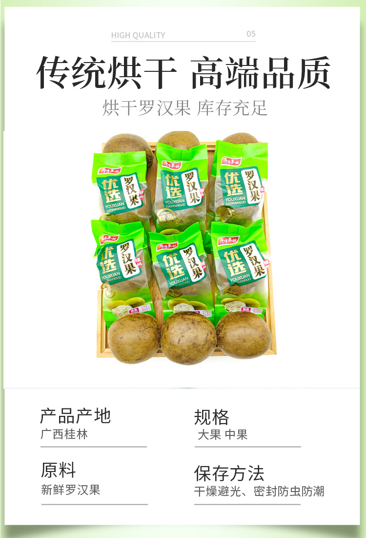 Производитель напрямую поставляет специальный цветочный и фруктовый чай Гуанси, сушеный чай Луо Хан Го, средние и большие плоды, спецификации Луо Хан Го
