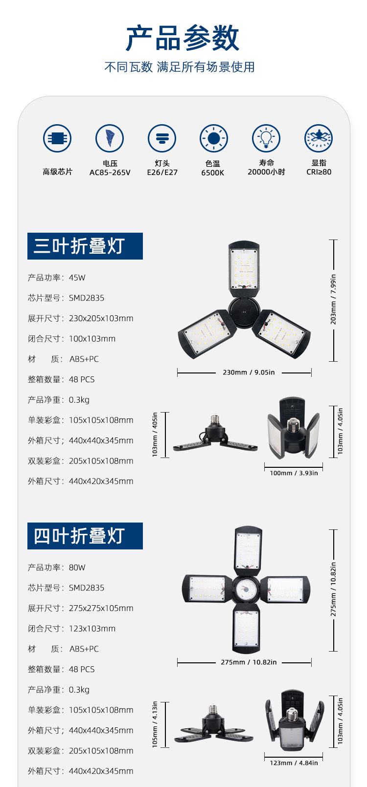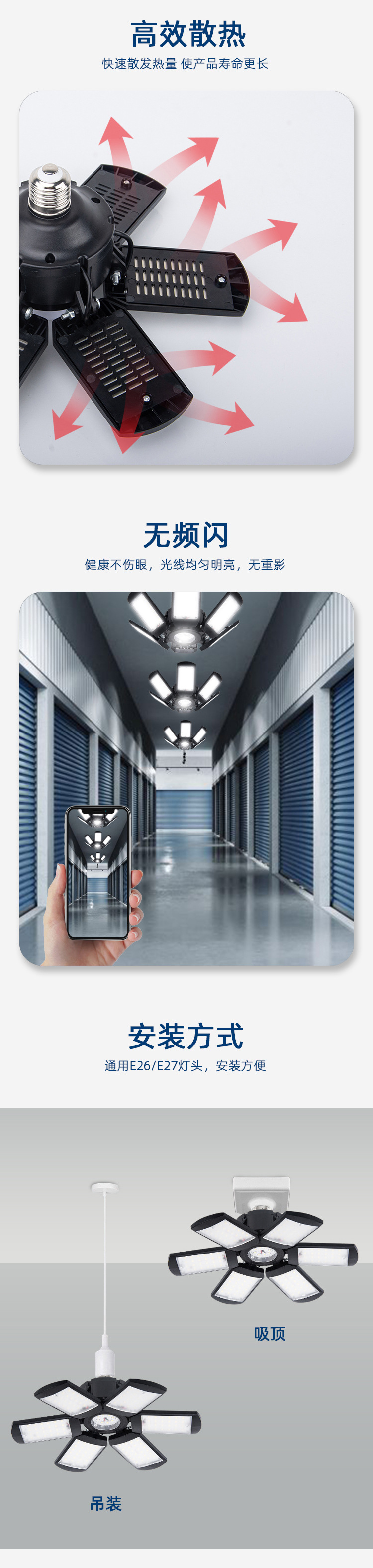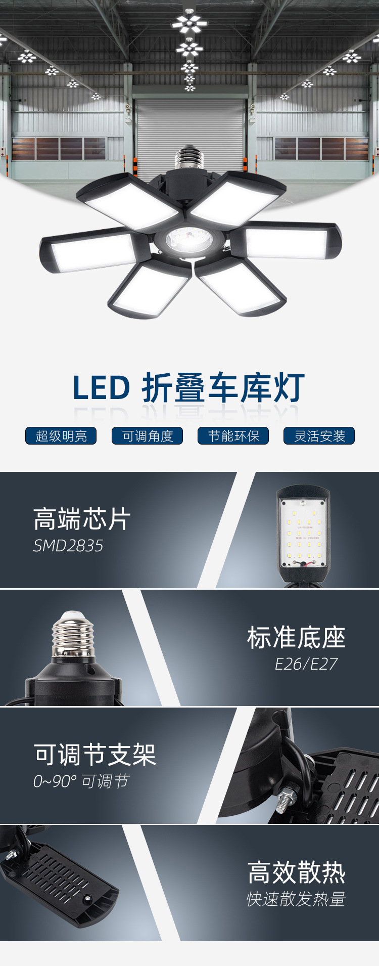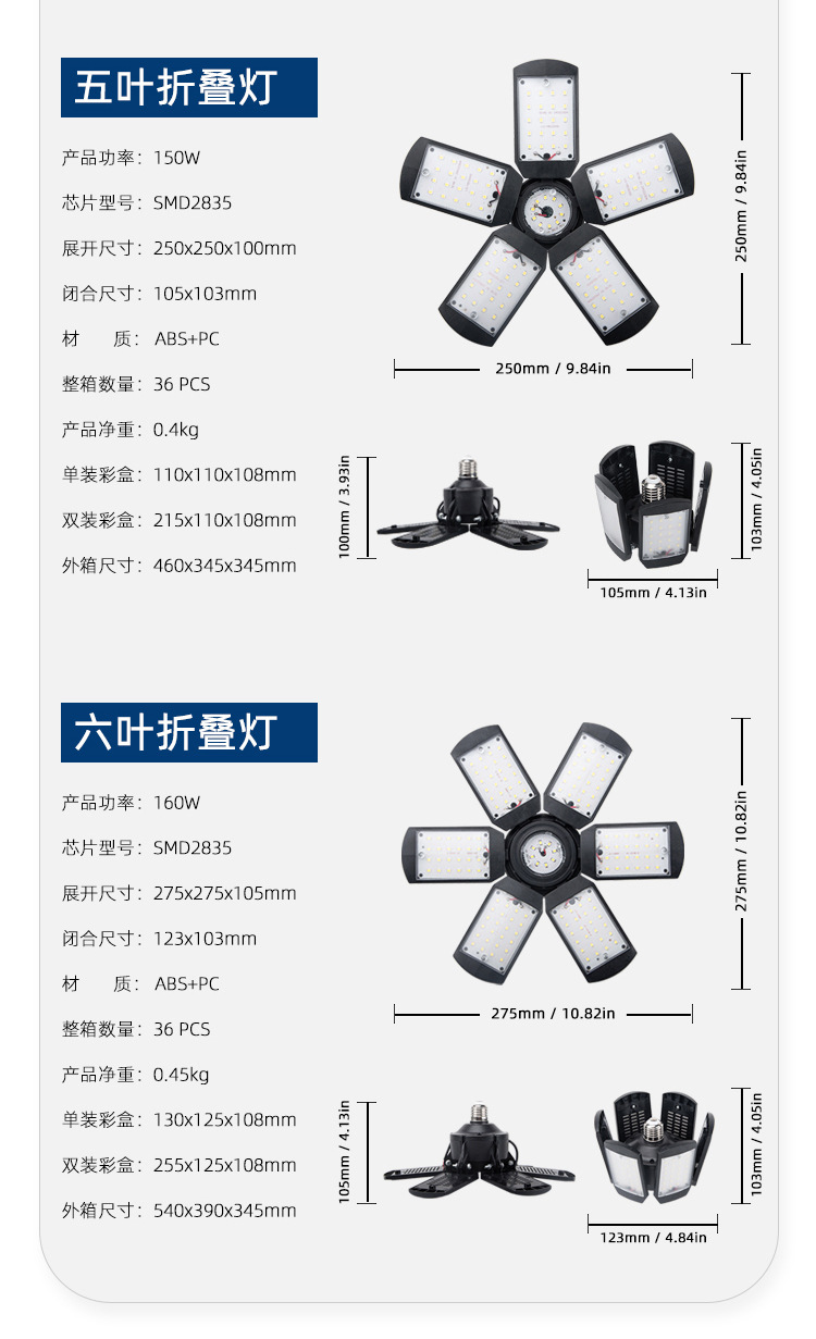 Новая складная лампа для гаража с LED, модель с деформацией, кросс-бордовая, 3-4-5 лепестков, прямая продажа с фабрики