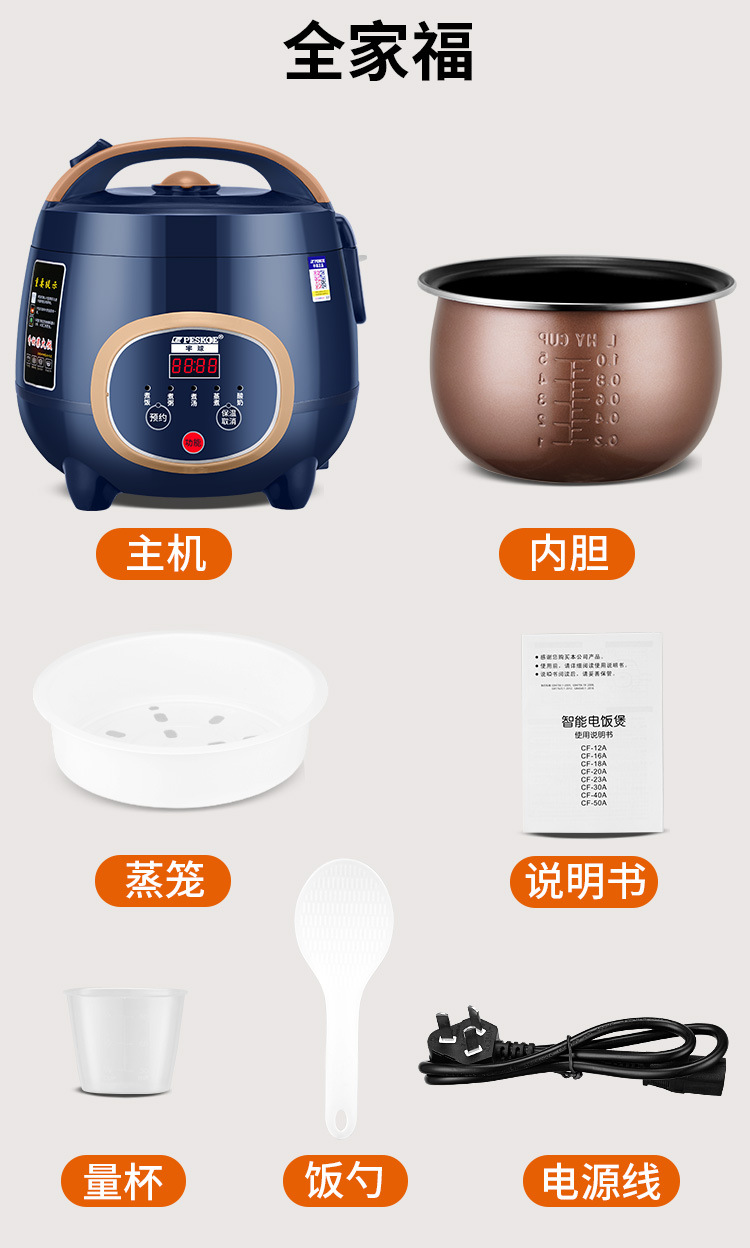Список упаковки Rice cooker steamer rice spoon measuring cup power cord