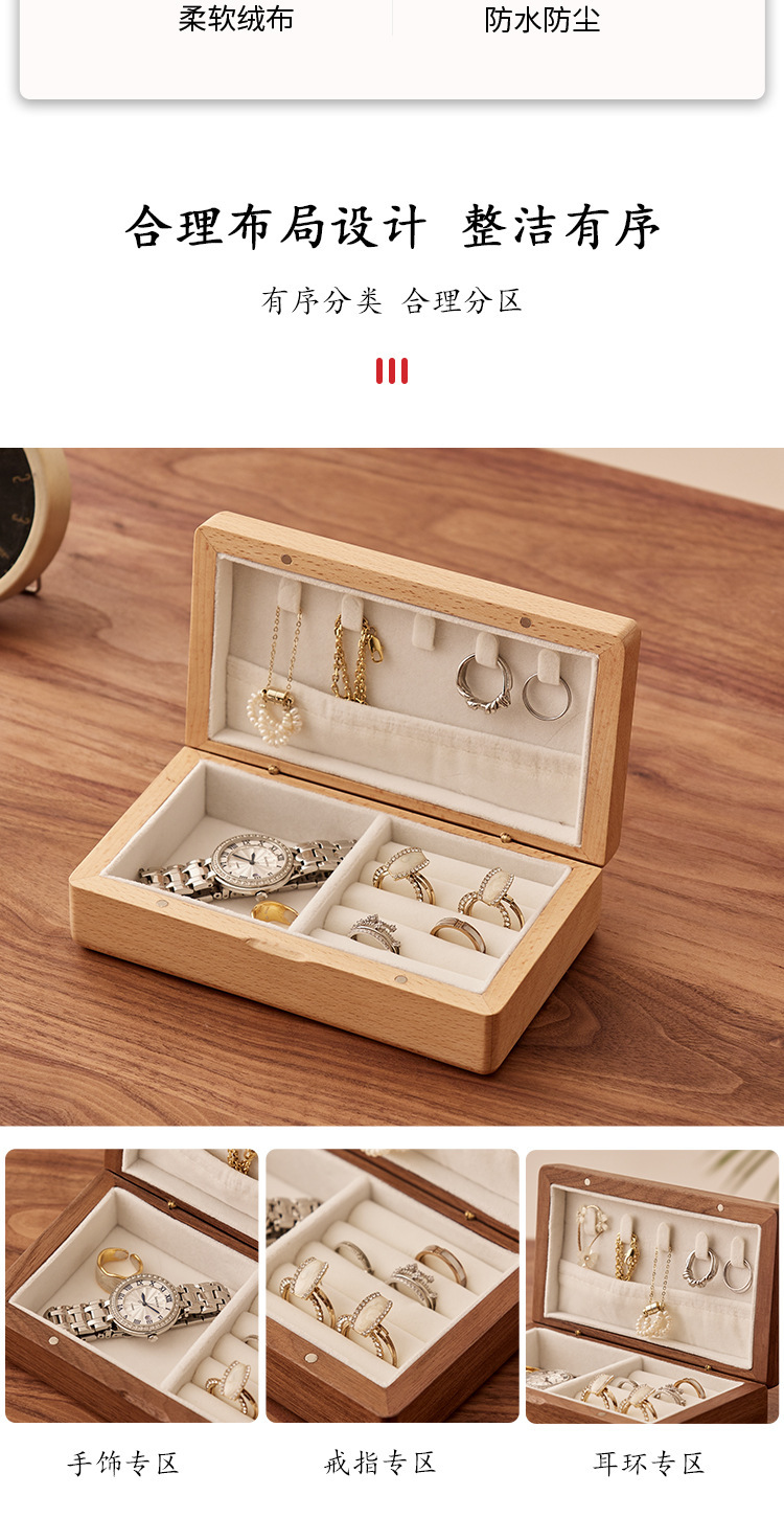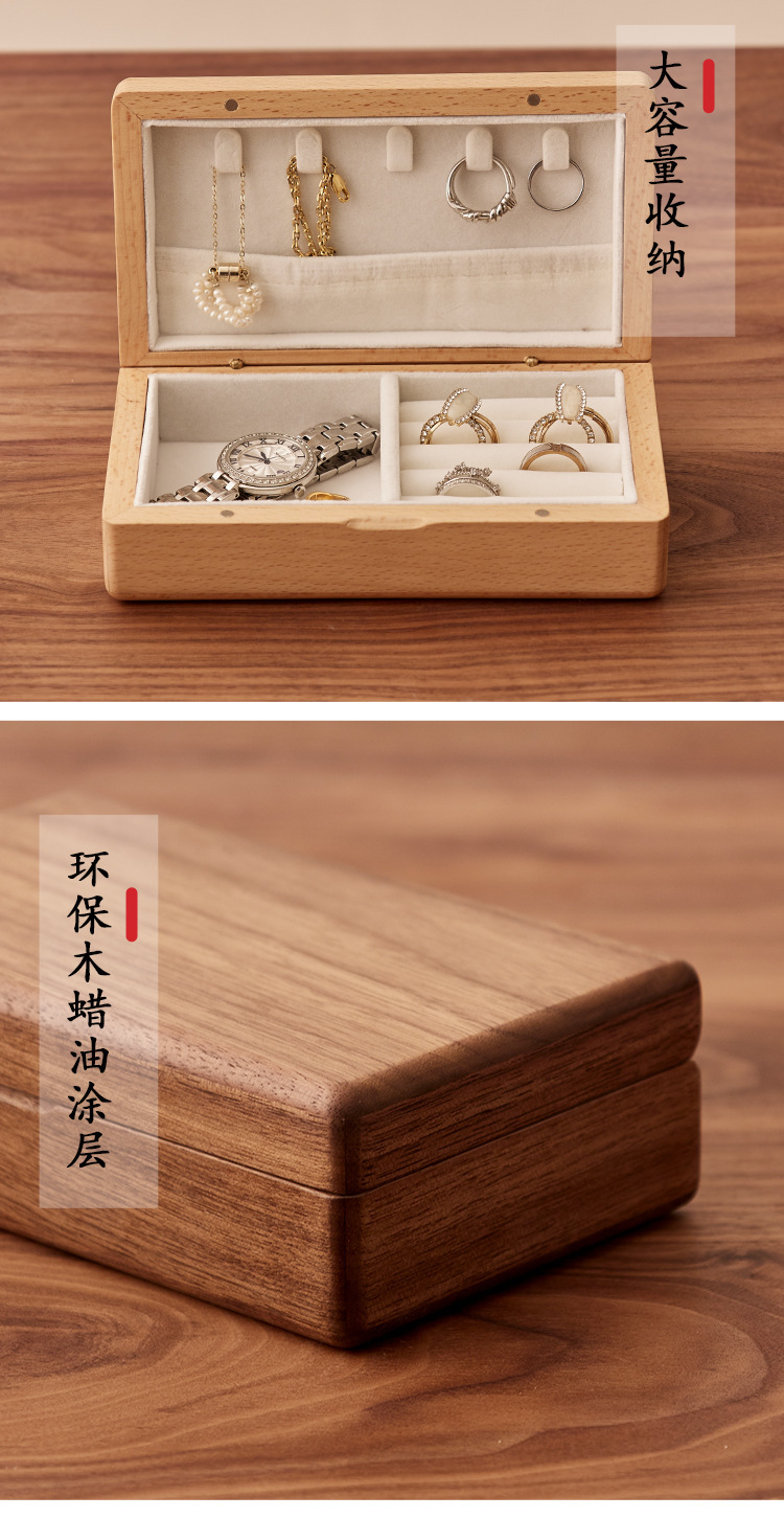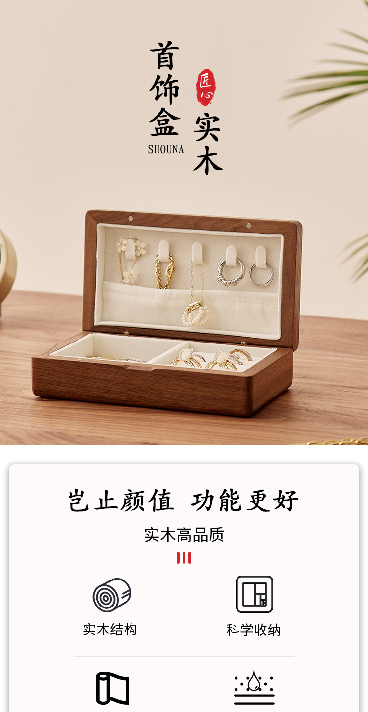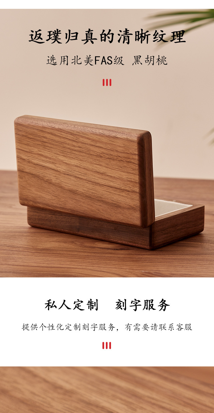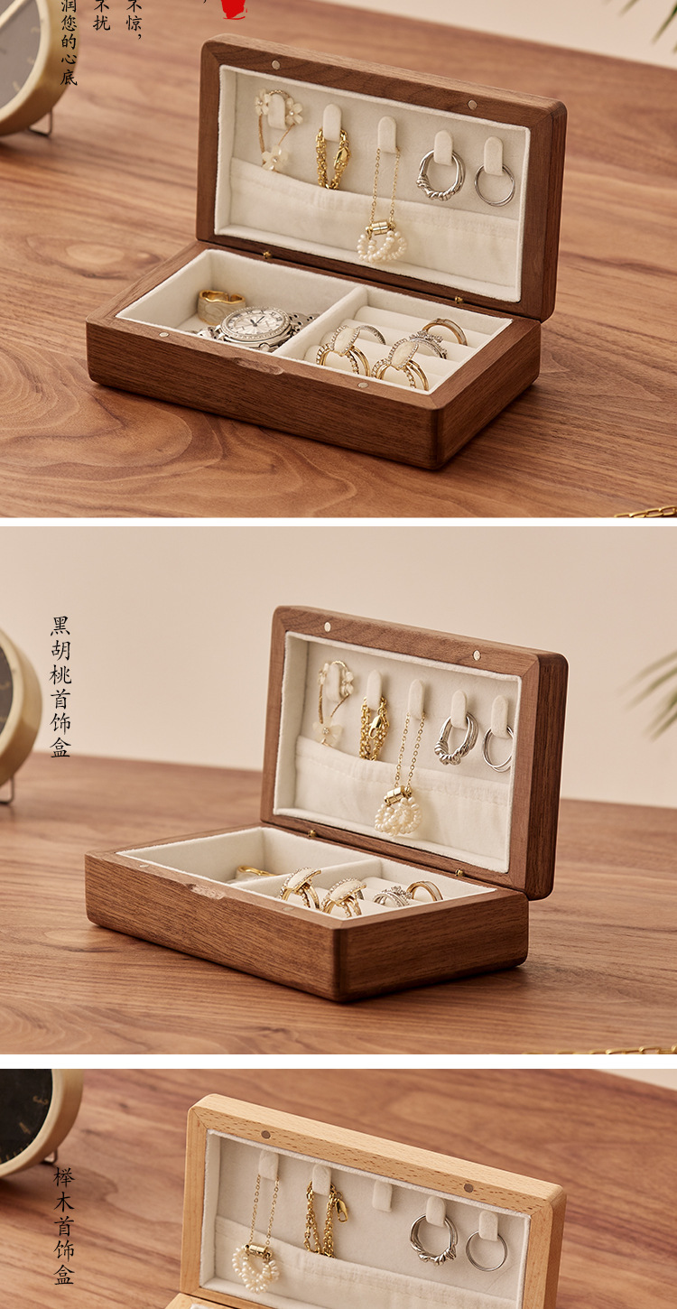 Ювелирная шкатулка из черного ореха, фланелевая, высококачественная, изысканная, из массива дерева, для хранения колец, серег и ручной работы