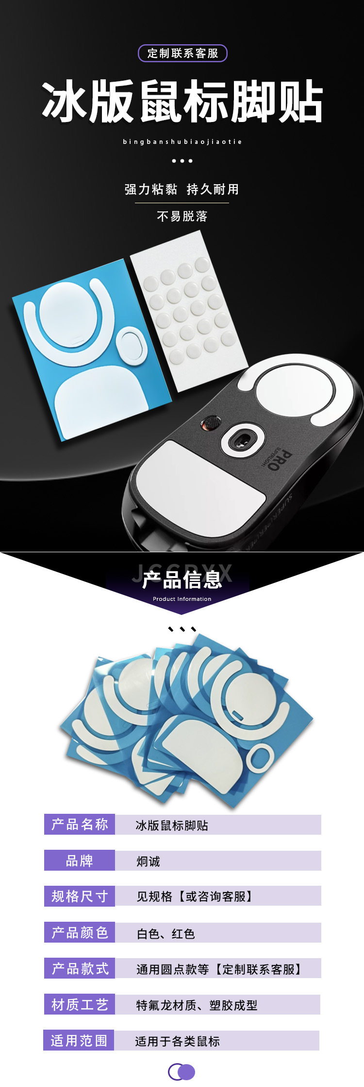 通用gpw2罗技G102特氟龙玻璃鼠标脚贴耐磨ptfe冰板小圆点鼠标脚贴