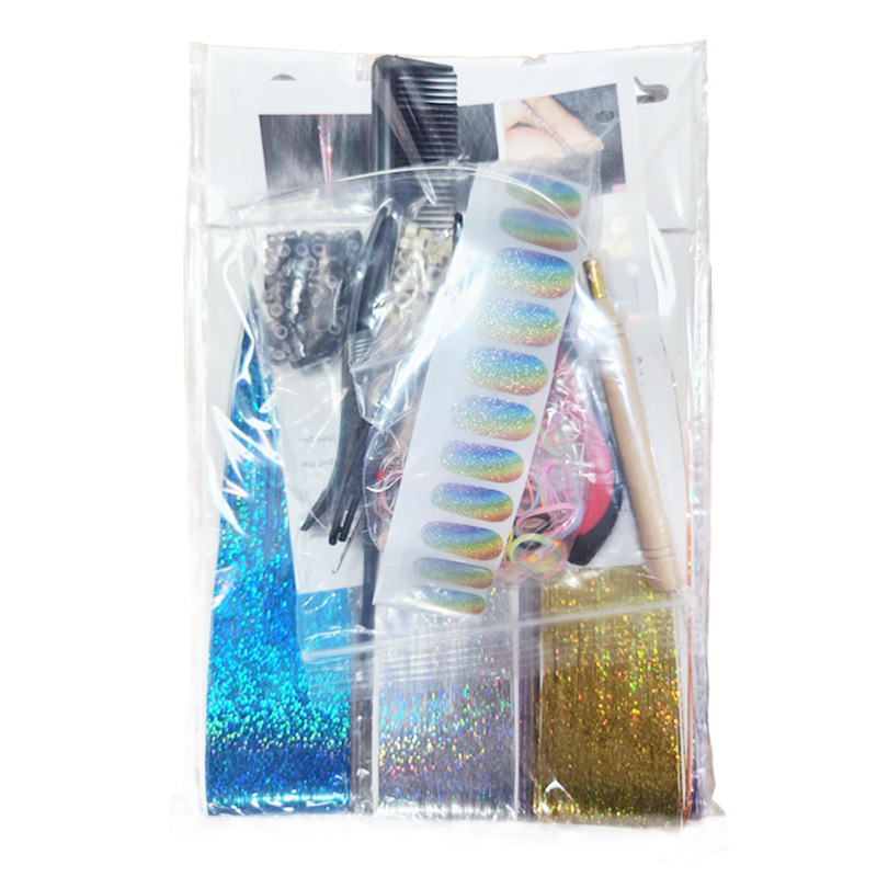 ![]() | 12-color mixed laser wire + wooden crochet hook + beading device + black pliers + 100 hair extension rings | 123cm | ¥17.5 / ≈ 211 ₽ | 53687 | 5508052056781 | |
