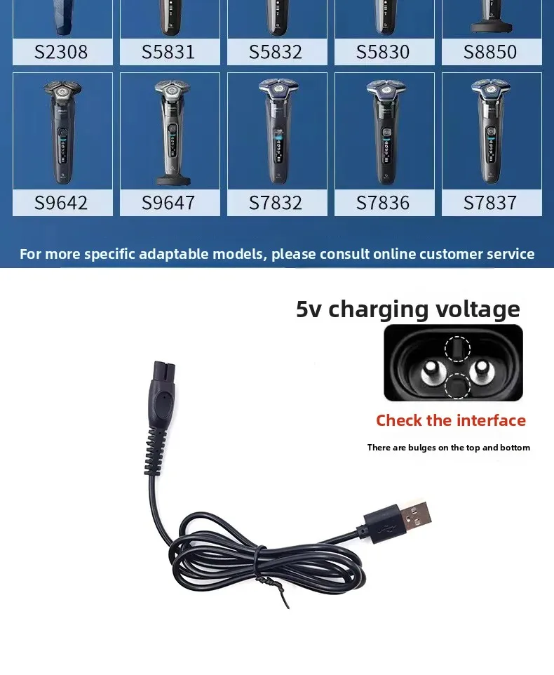 Подходит для зарядного устройства Philips для электробритвы, аксессуары, USB кабель питания, автомобильный кабель питания, универсальный