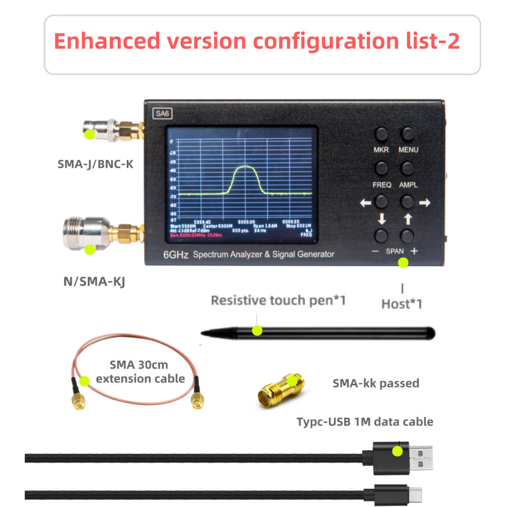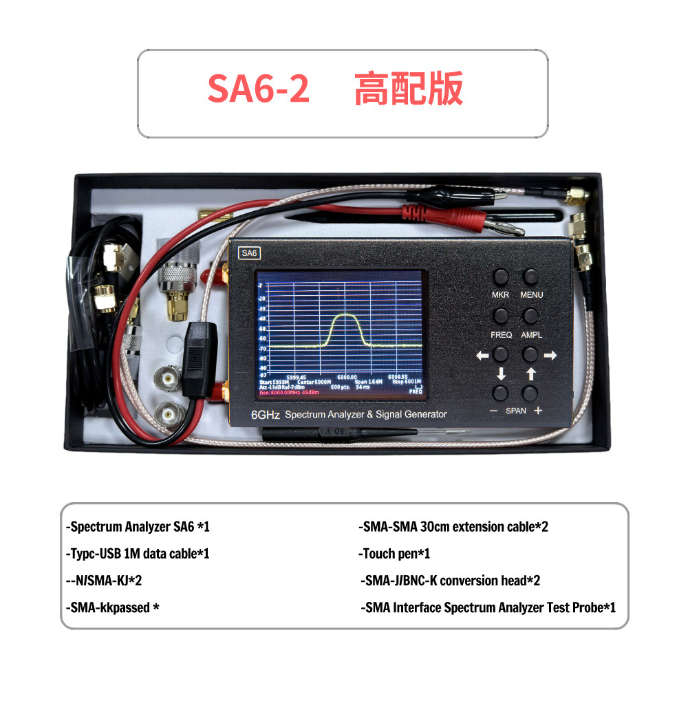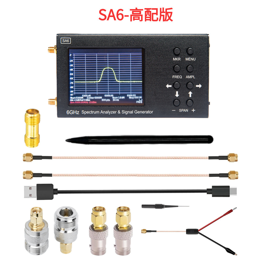 SA6是一款简单的便携式频谱分析仪和信号源,旨在显示35至6200 MHz频率范围内的信号频谱。
