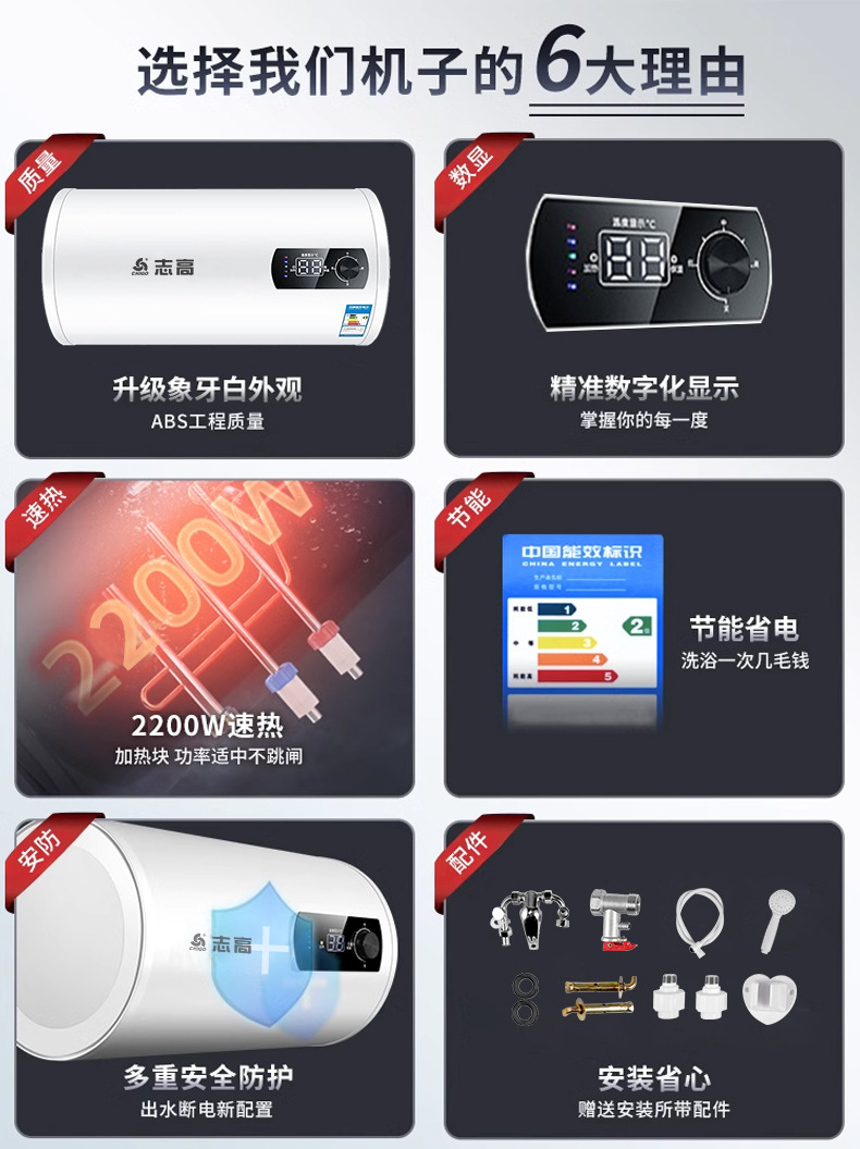 Новый электрический водонагреватель Chigo для аренды, 60 литров, может хранить воду, мгновенное нагревание, энергосберегающий