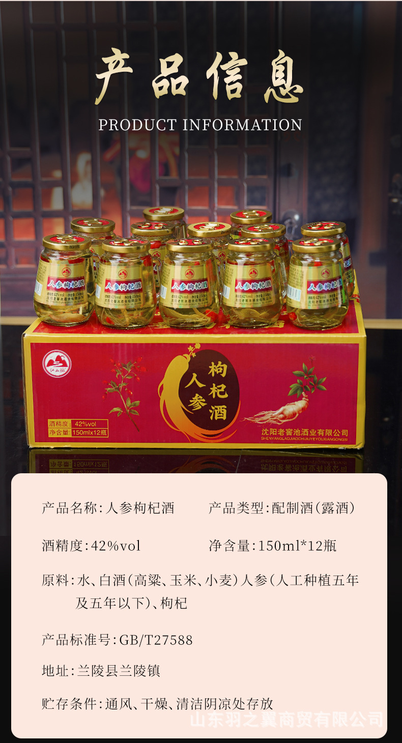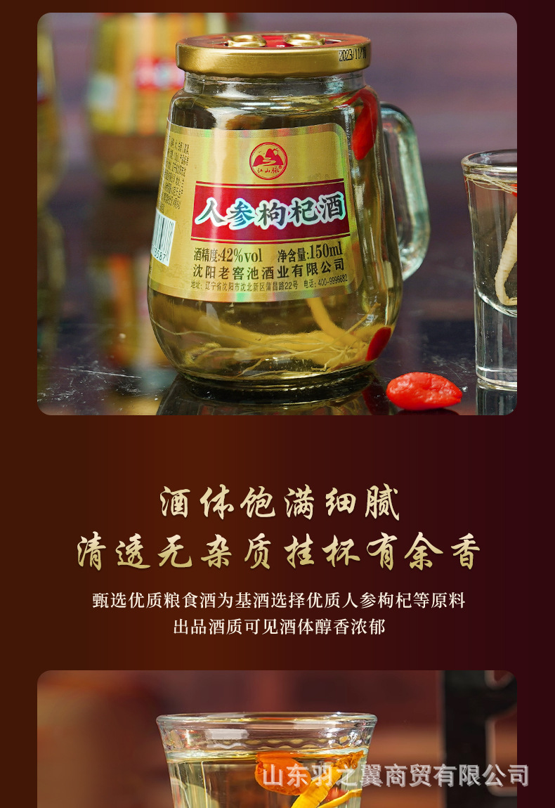 Сырьё и ингредиенты Water, liquor (sorghum, corn, wheat), ginseng, wolfberry