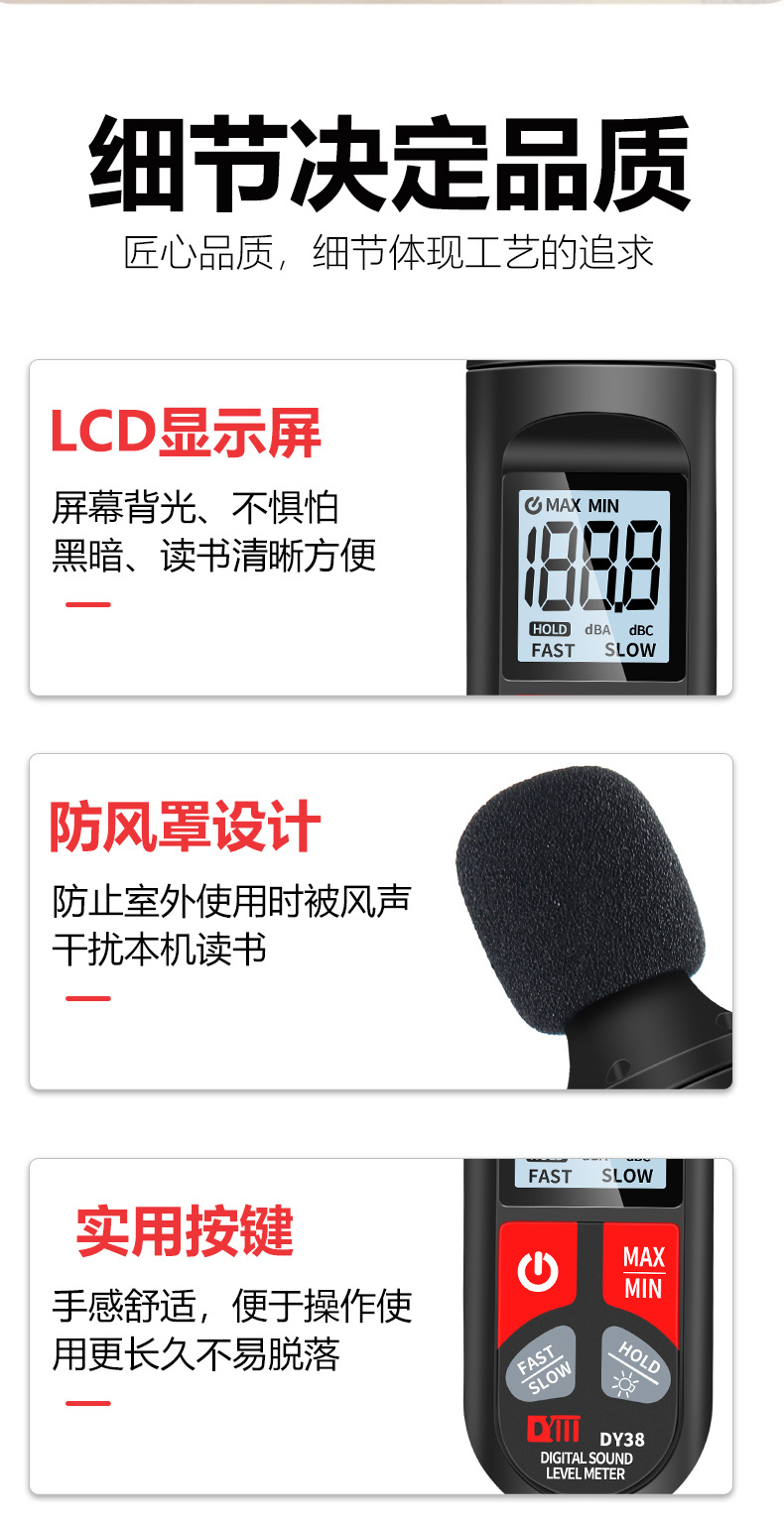 Прибор для измерения шума DY38, высокоточный шумомер, детектор децибел, измеритель громкости для домашнего использования
