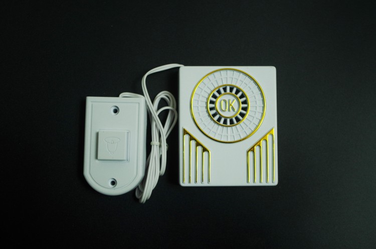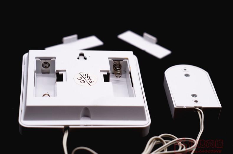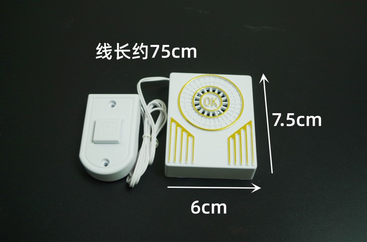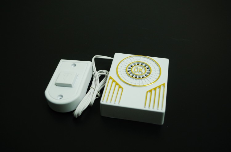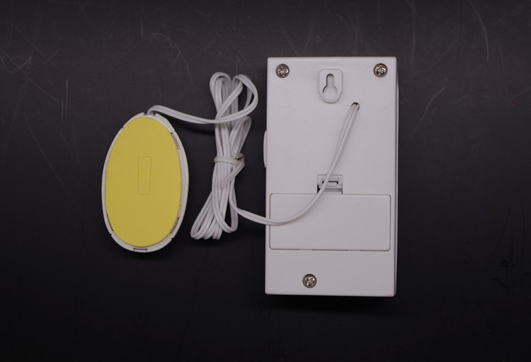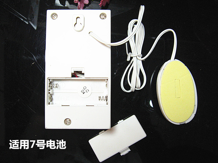 门铃分为发射板和主机两部份组成线连接组成,发射板可用螺丝,玻璃胶,海绵胶固定在任何位置,无误响。