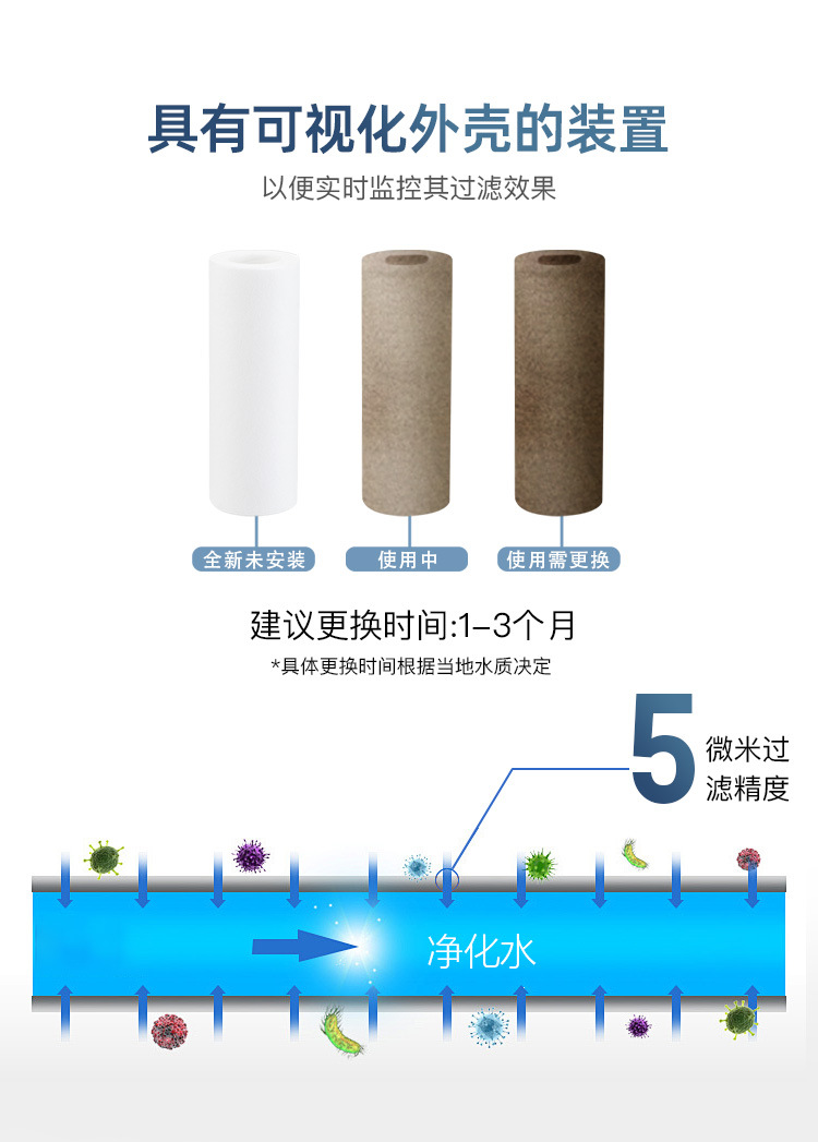 Water purification effect Remove scale, Dechlorination, Remove heavy metals, Remove rust, Remove sediment, Remove organic matter