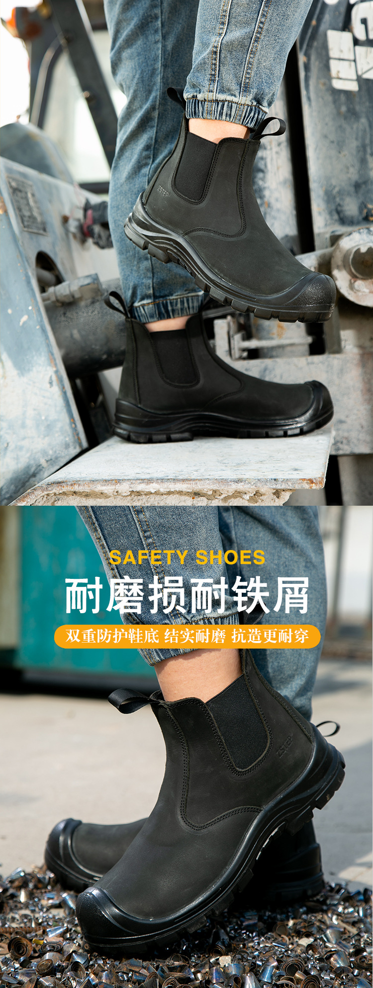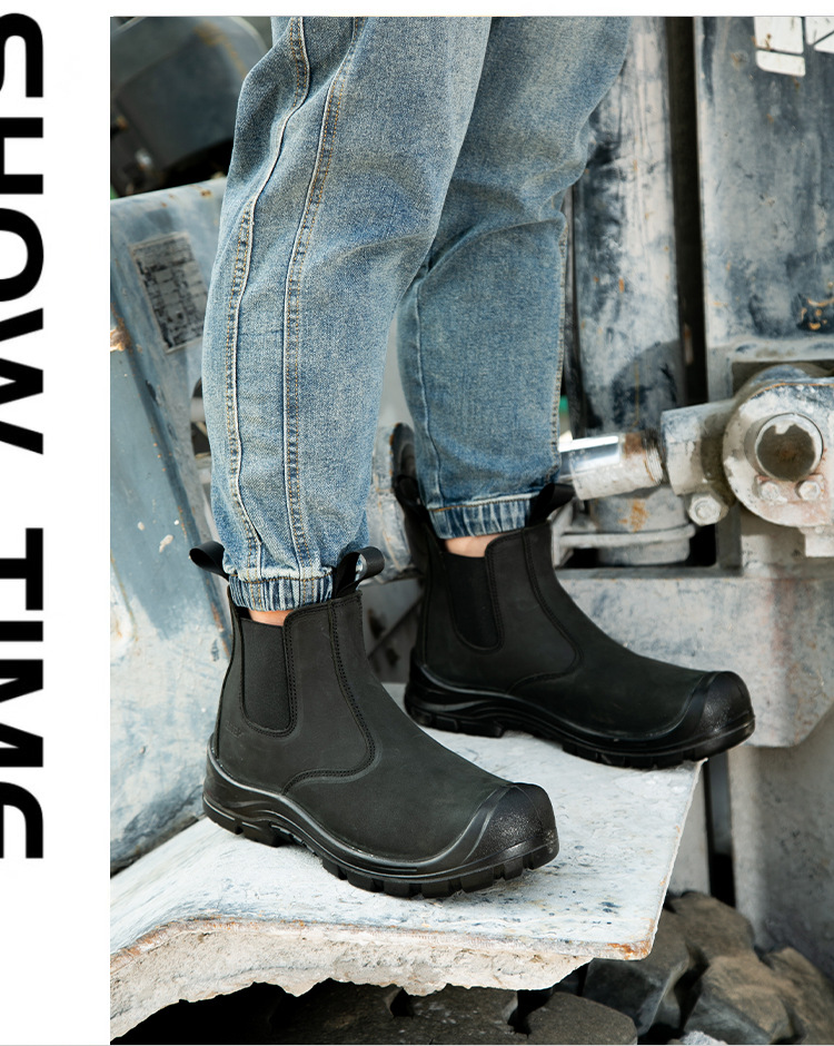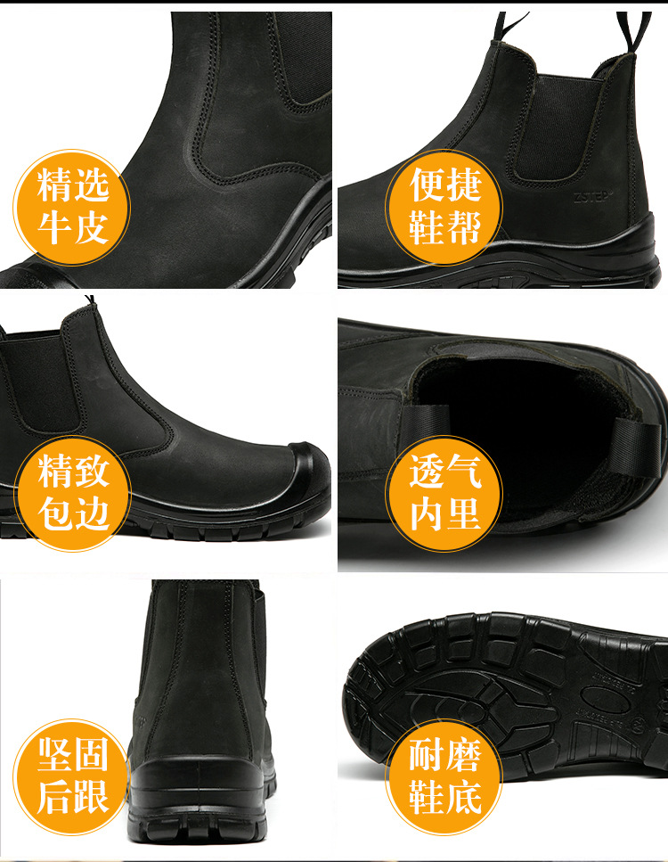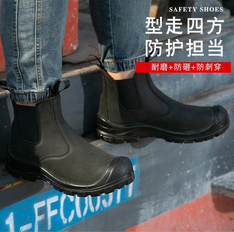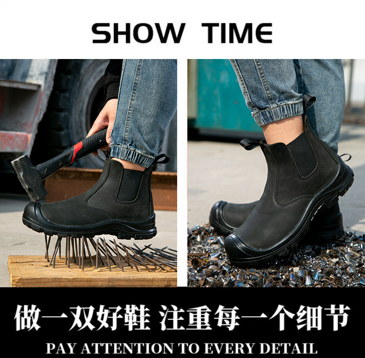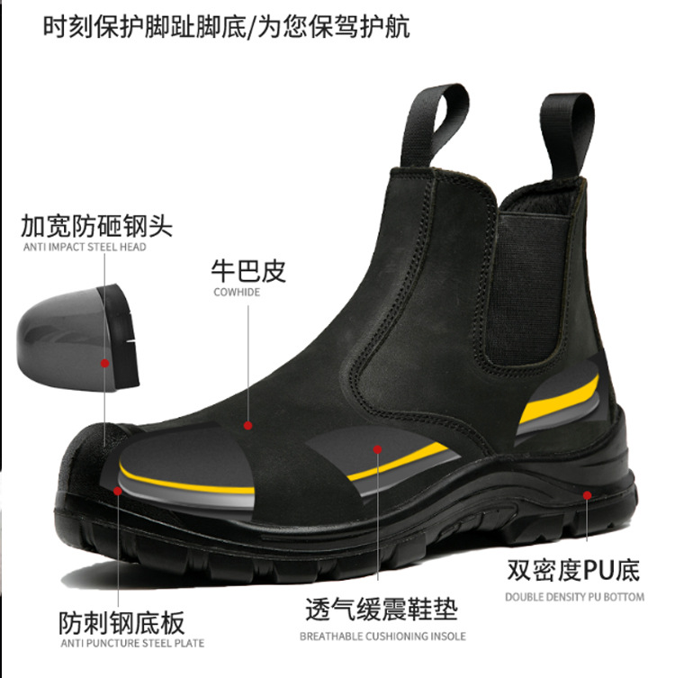 跨境劳保鞋男夏季防砸防刺穿钢头耐磨轻便防滑透气舒适安全工作鞋 厂家批发劳保鞋男牛皮透气钢包头防砸防刺穿耐磨实心底电焊工作鞋 切尔西 黑色 钢包头 劳保鞋男 安全鞋