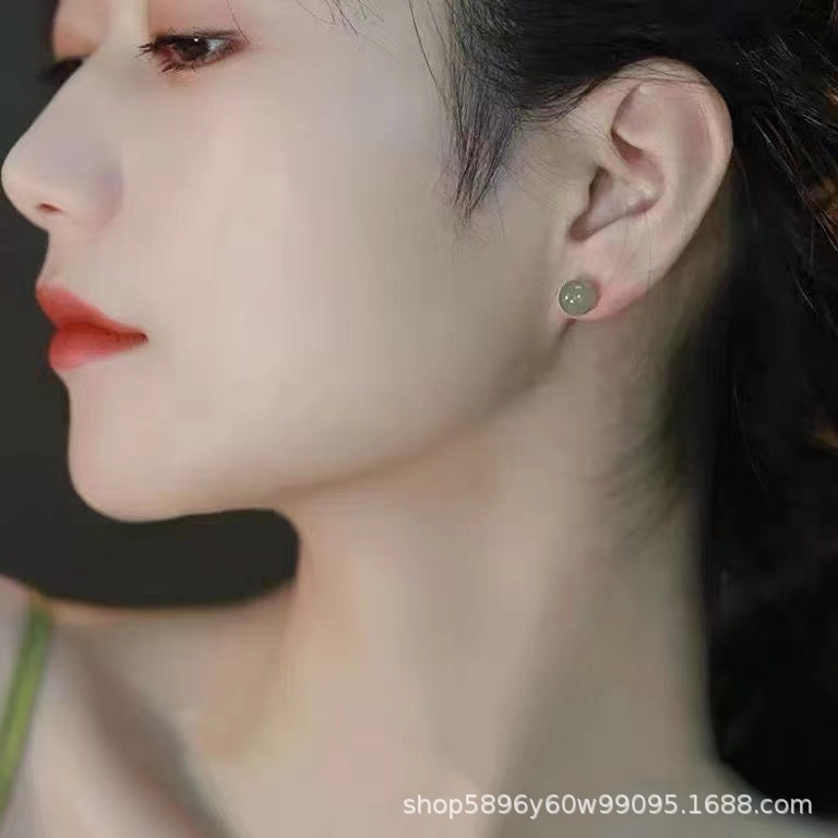 此款为天然绿东陵耳钉