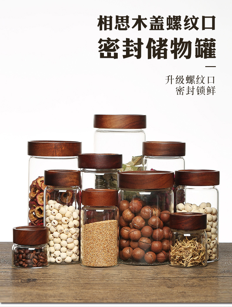 Банка из акации для повседневного использования, герметичная банка для хранения мандариновой кожуры из высокобorosilicate стекла