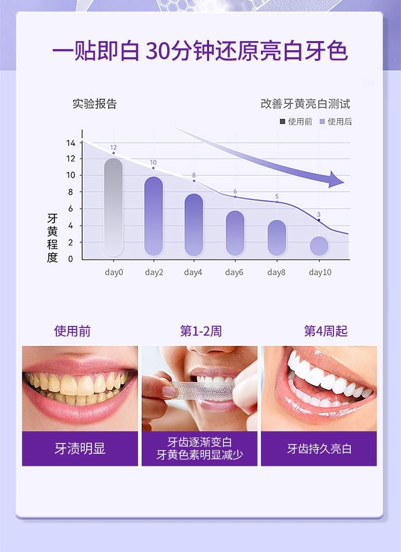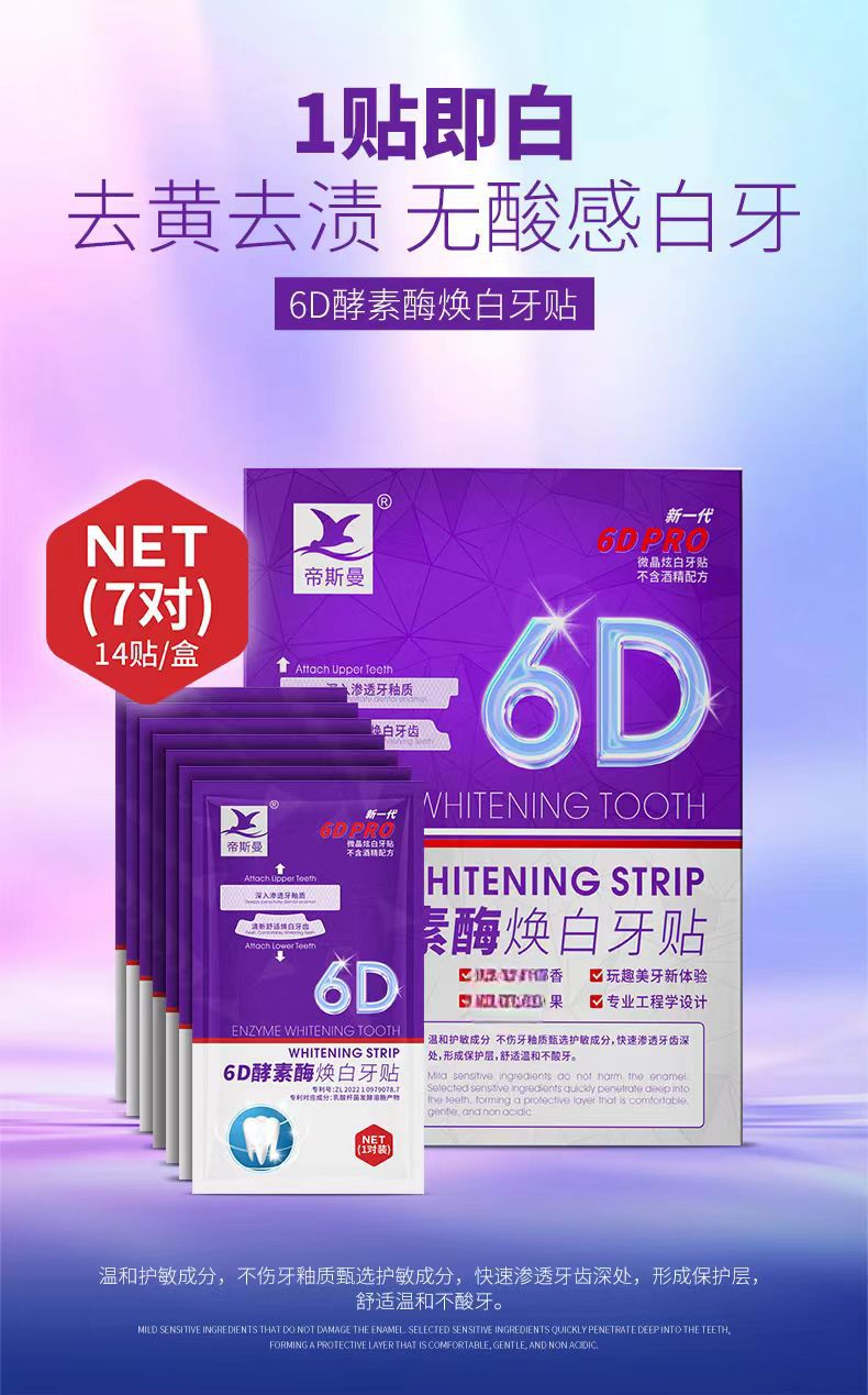 焕白牙贴,她是一种有效的牙齿焕白方法。它贴合牙齿表面,不仅可以帮助你拥有洁白无瑕的笑容,还能保护你的牙齿免受蛀牙和敏感的困扰。使用方便,一贴一撕即可大胆绽放自信笑容!🌈🌈🌈��👑👑💋💋💋