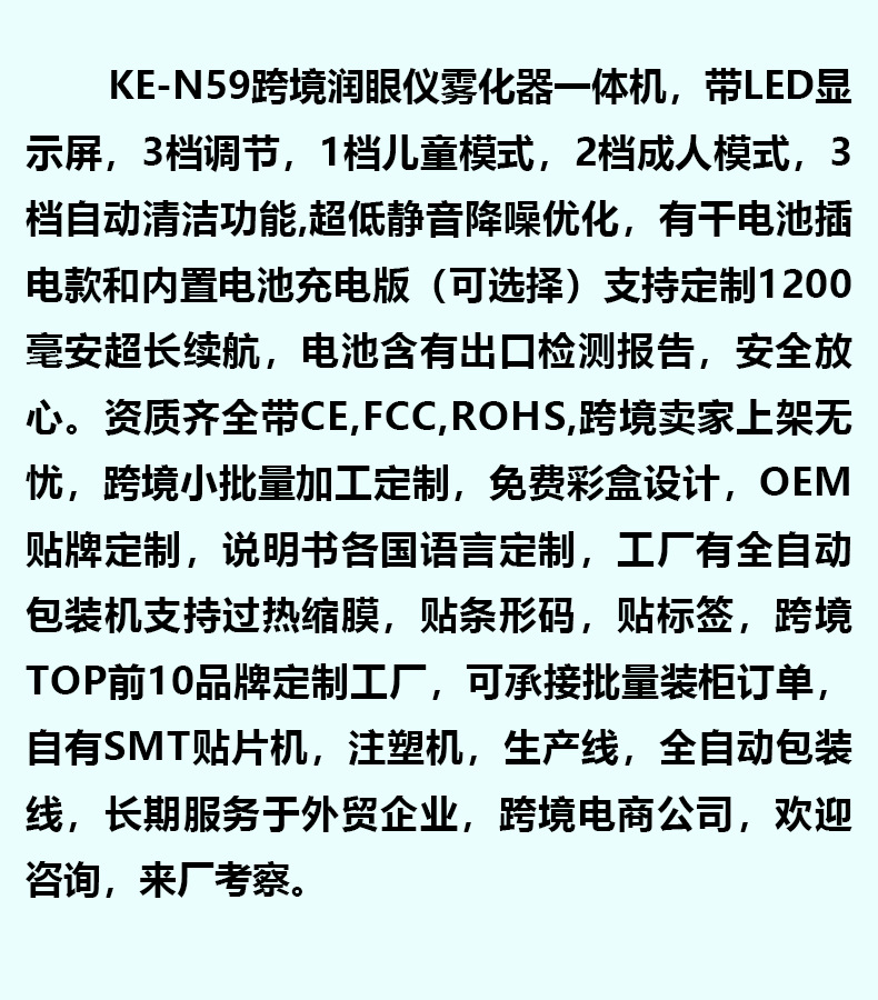 ![]() | White (dry electric plug-in model) ke-n59 handheld atomizing and moisturizing eye care all-in-one machine | ¥30.8 / ≈ 371 ₽ | 9862 | 5979338216965 | |