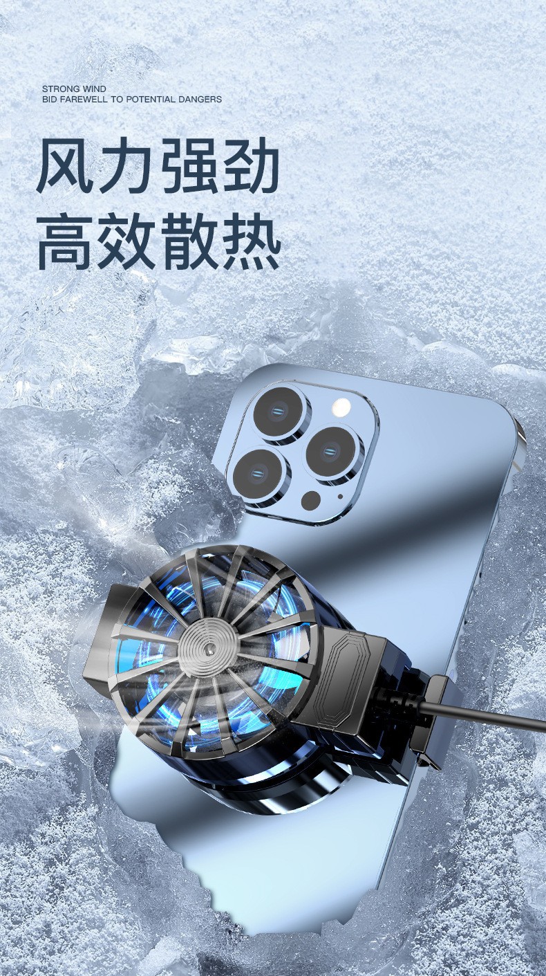 Новый воздушный мобильный телефонный радиатор с вентилятором охлаждения с эффектом яркого света для игр и стриминга, охлаждение и рассеивание тепла