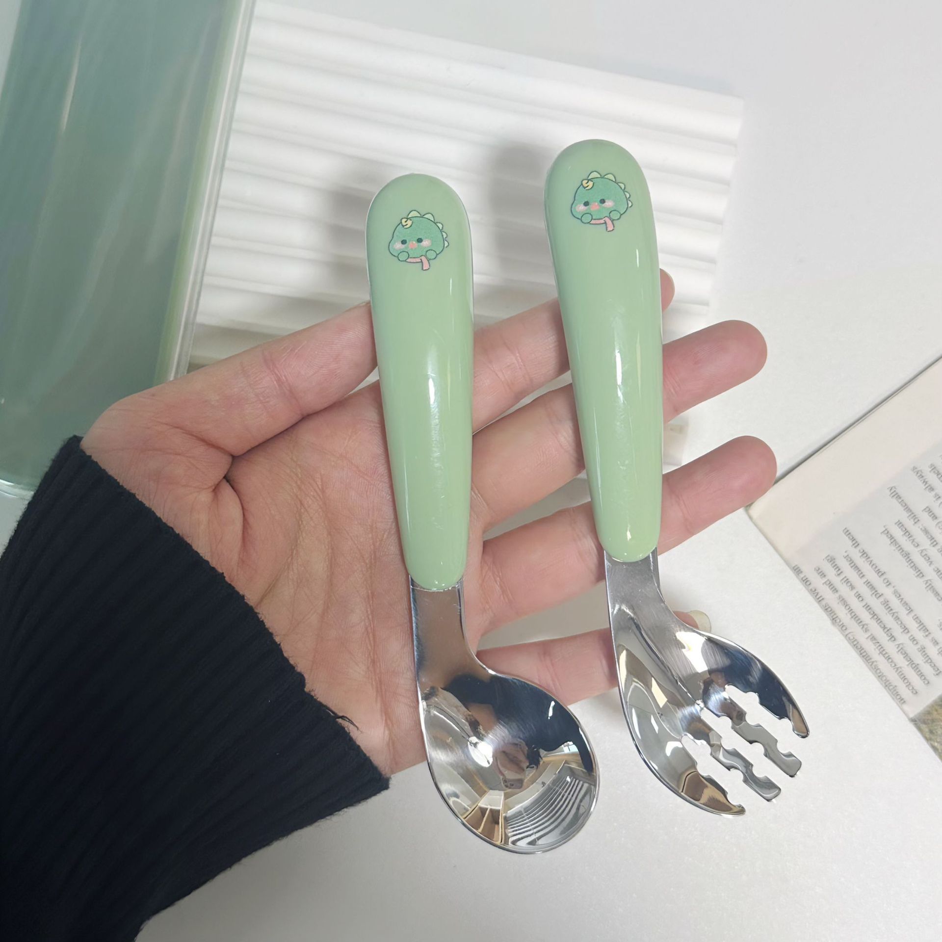 Детская тренировочная ложка из нержавеющей стали, ложка для детей, столовая ложка, посуда для детей, коробка