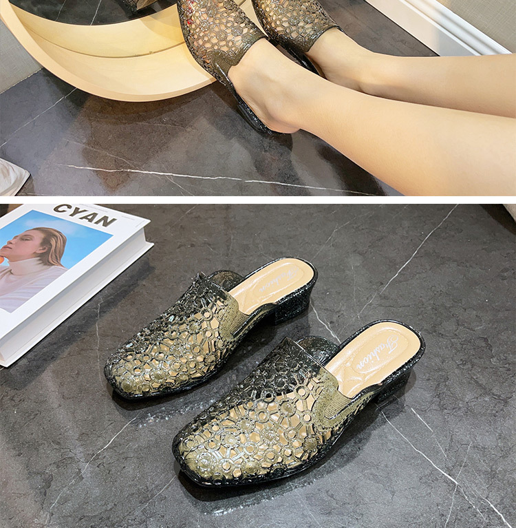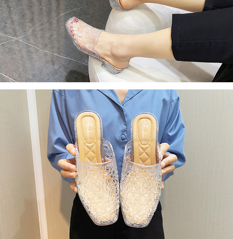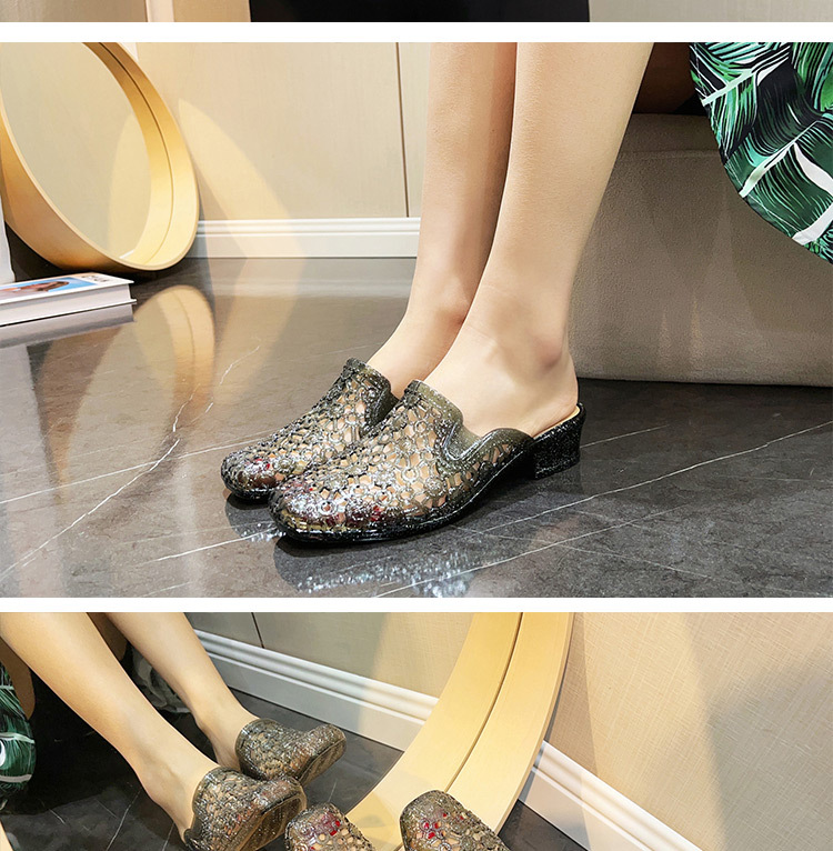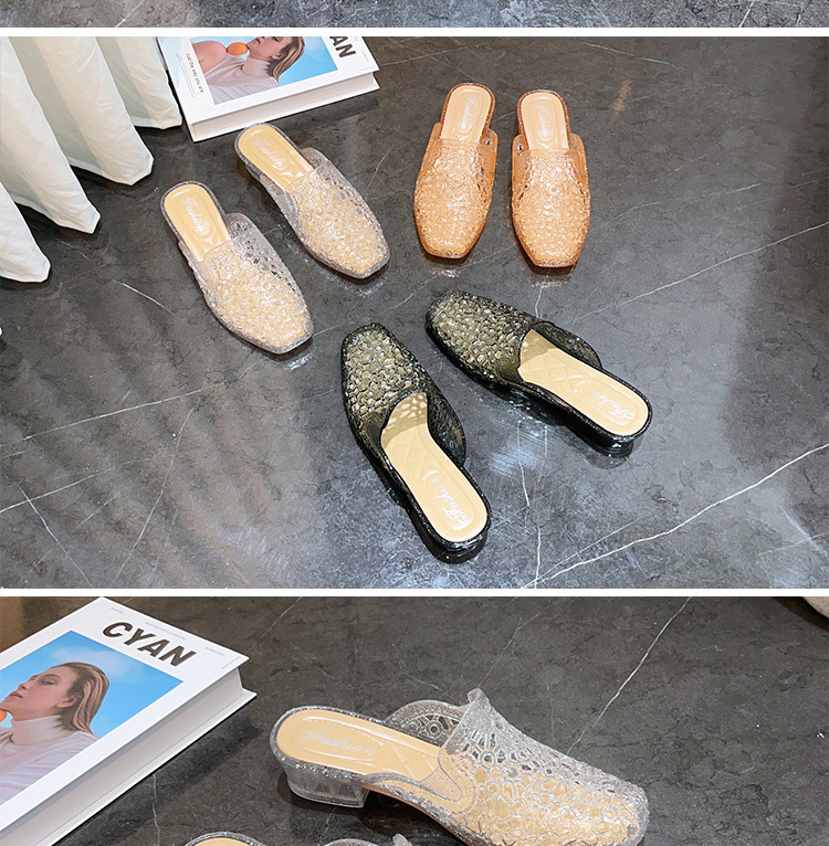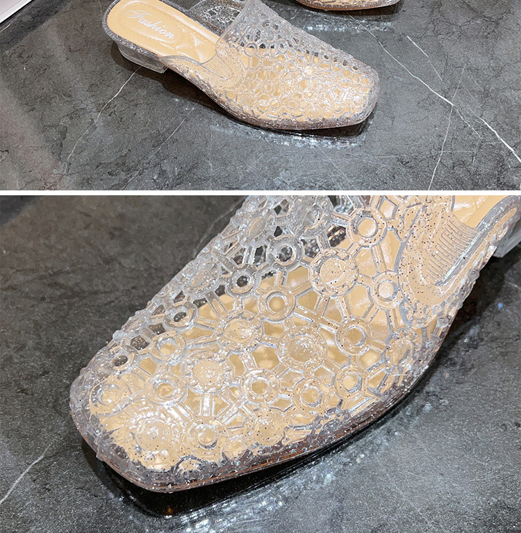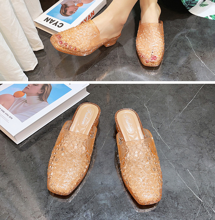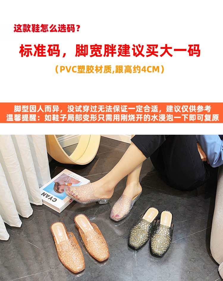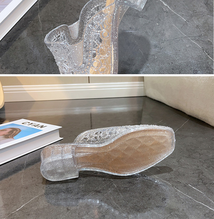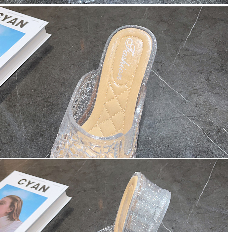 Сандалии с толстым каблуком для женщин, повышающие рост, пластиковые кристаллические полупальцы, летние, не скользящие, простые