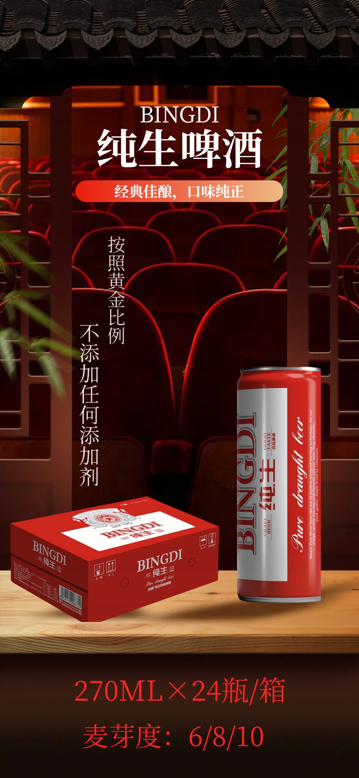 Оптовая продажа пива Bingdi в банках, спецификация 270мл*24/коробка, подходит для баров, KTV и ночных клубов, освежающее