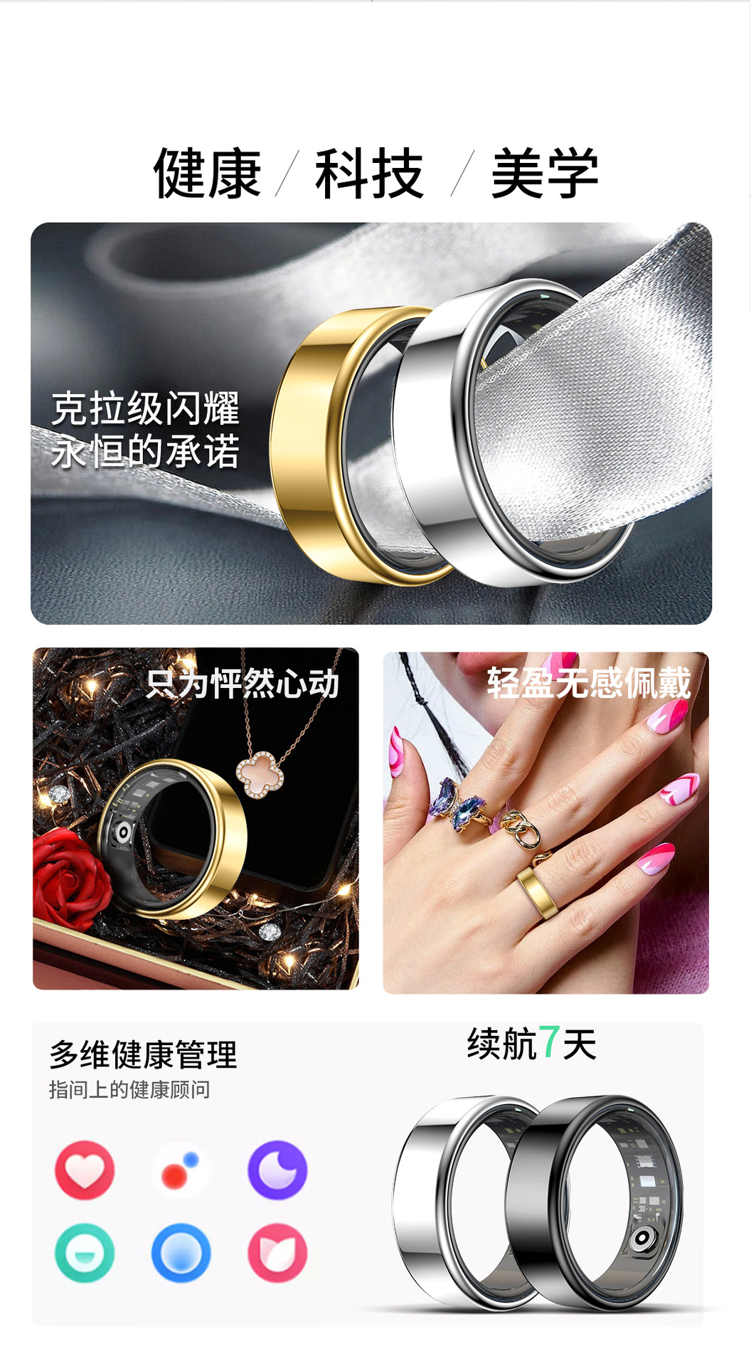 Лучшее продаваемое умное кольцо Amazon для мониторинга сна, сердечного ритма, кислорода в крови, артериального давления, физической активности, дистанционного управления фотографией, кольцо для заботы о семье