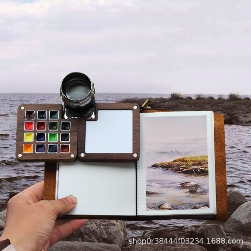 Мини-палитра из черного ореха с зажимом, контейнер для акварельных красок, портативная палитра, акварельная коробка
