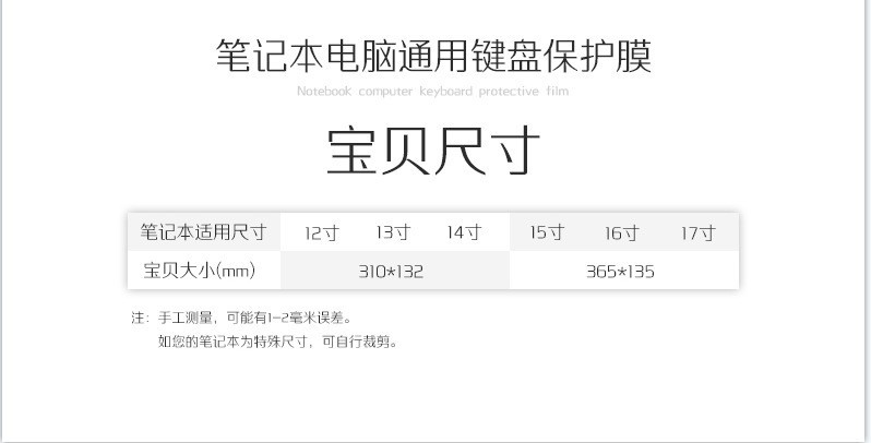 适用:笔记本、台式机键盘不分型号只区分长宽尺寸