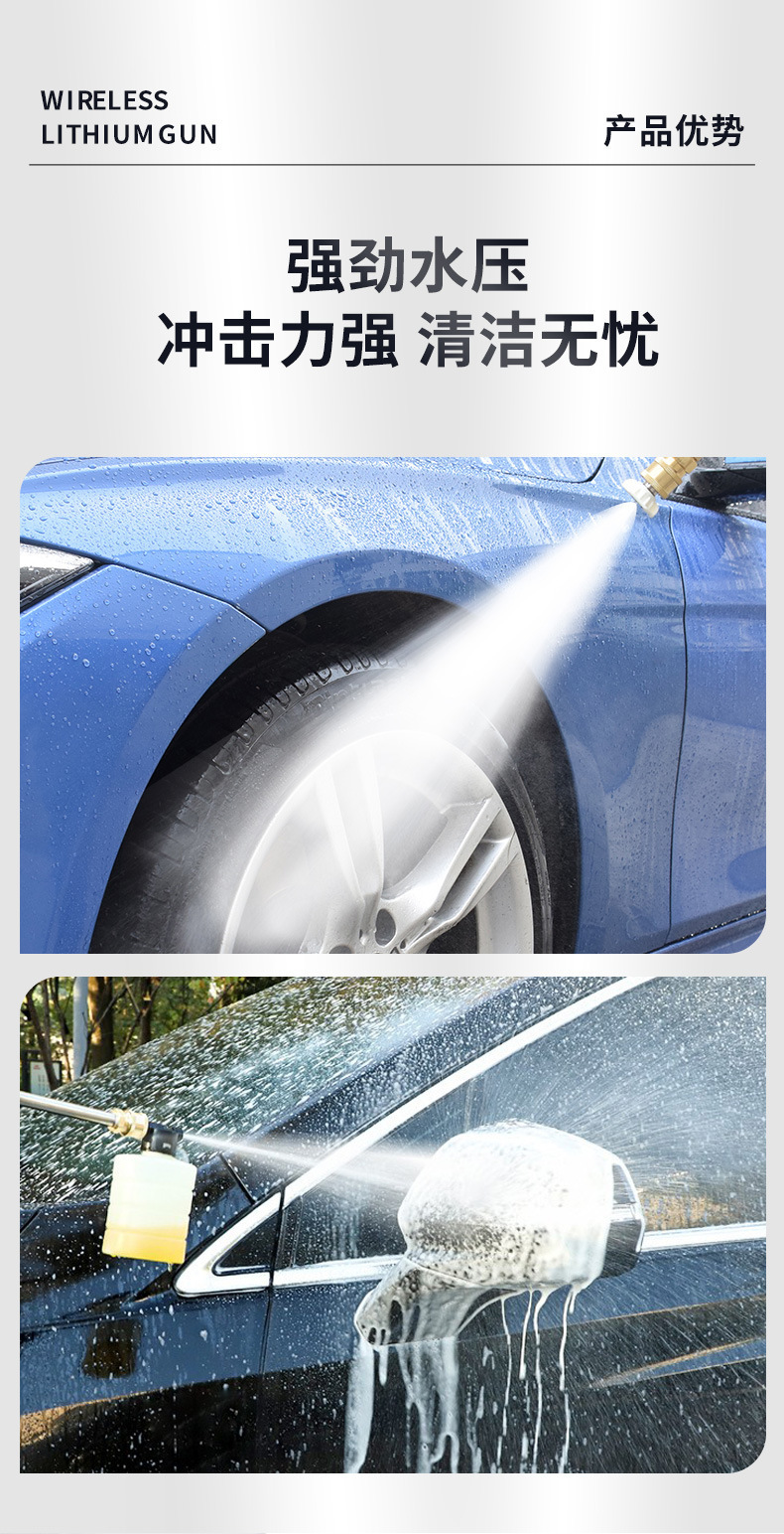 Мощный водяной распылитель для мойки автомобилей с перезаряжаемым литиевым аккумулятором, портативная мойка для автомобилей, специальный высоконапорный водяной пистолет