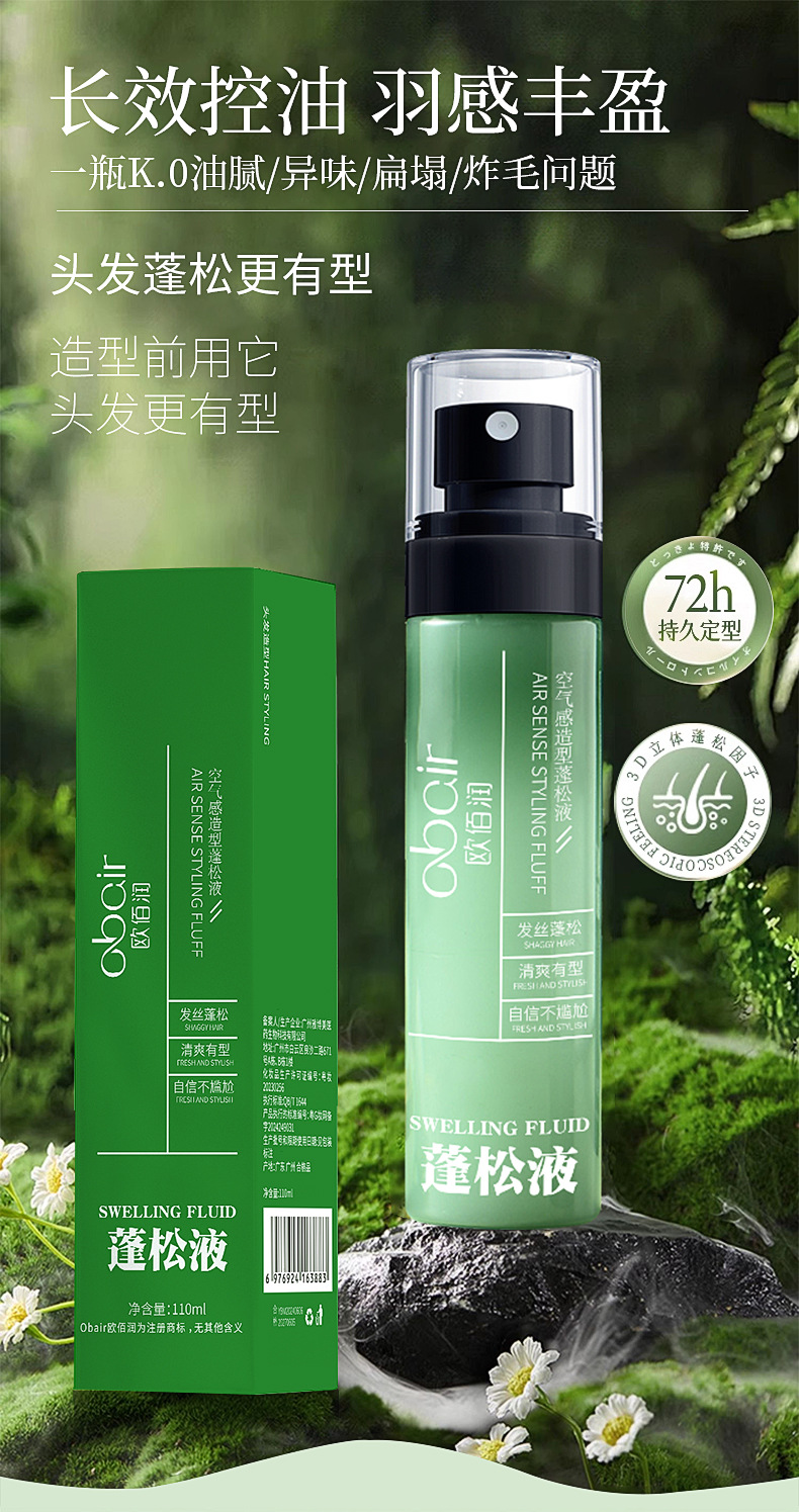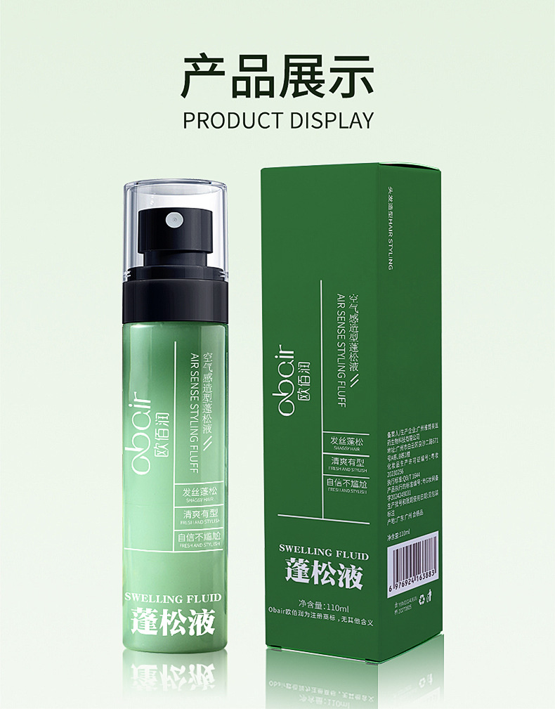 Ou Bai Run Воздушный Моделирующий Пухлый Жидкий Спрей Без Чистки Сухие Волосы Пухлый Спрей Воск Гель Укладки Оптовая Продажа