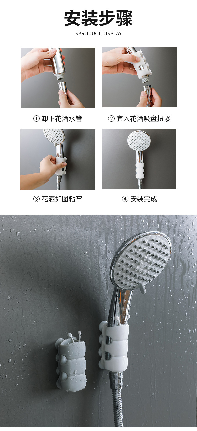 Крепление для душевой насадки на присоске, универсальное, не перфорированное, подвижное крепление, универсальный силикон