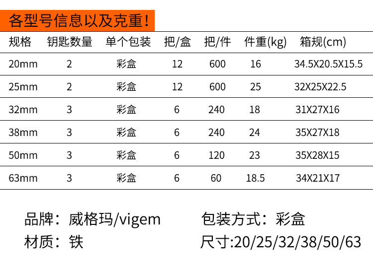 ![]() | 63mm imitation copper padlock | ¥3.65 / ≈ 44 ₽ | 9640 | 5443919900763 | |