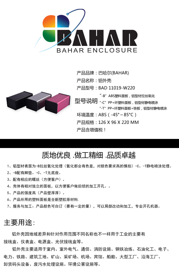 Аксессуары шасси Bahar Housing DIY Инструмент Базовая станция Блок питания Алюминиевый профиль BAD11019(W220)