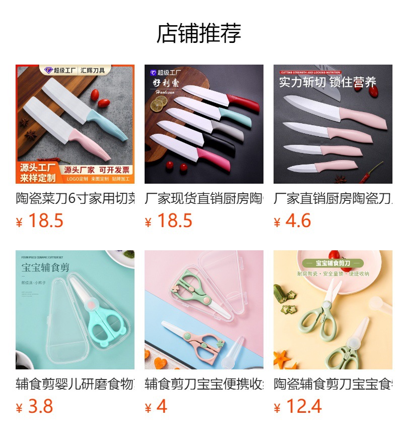 ![]() | Ceramic kitchen knife [6.5 inch-red handle]] | ¥17.5 / ≈ 211 ₽ | 18289 | 5617446643603 | |