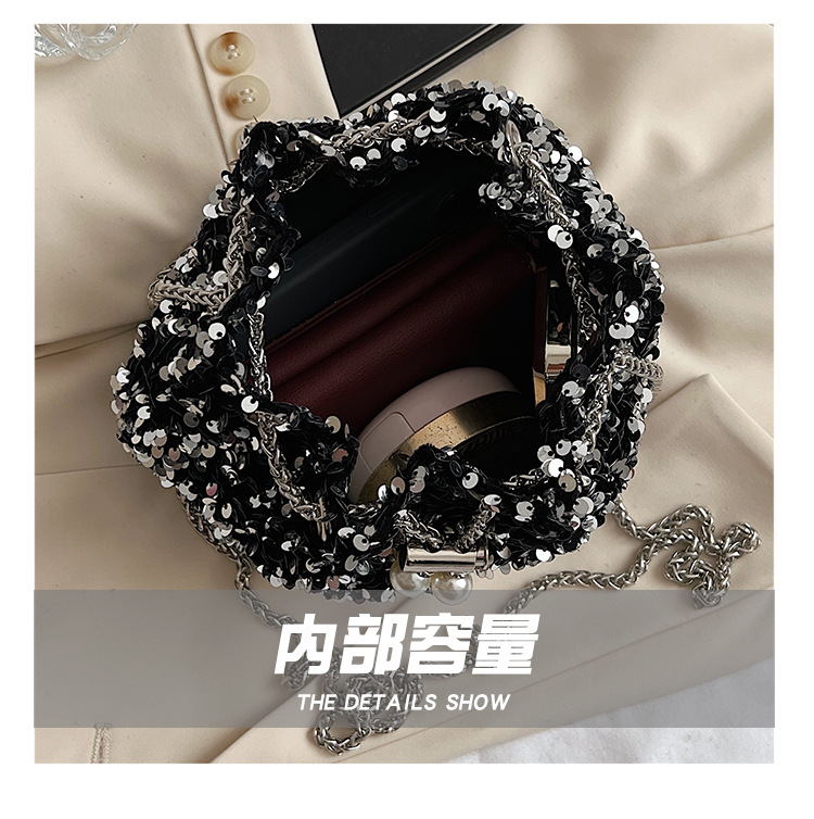 Модная персонализированная сумка с пайетками для женщин 2025 Новый корейский стиль ведерко, стильная сумка на плечо, модная вечерняя сумка через плечо