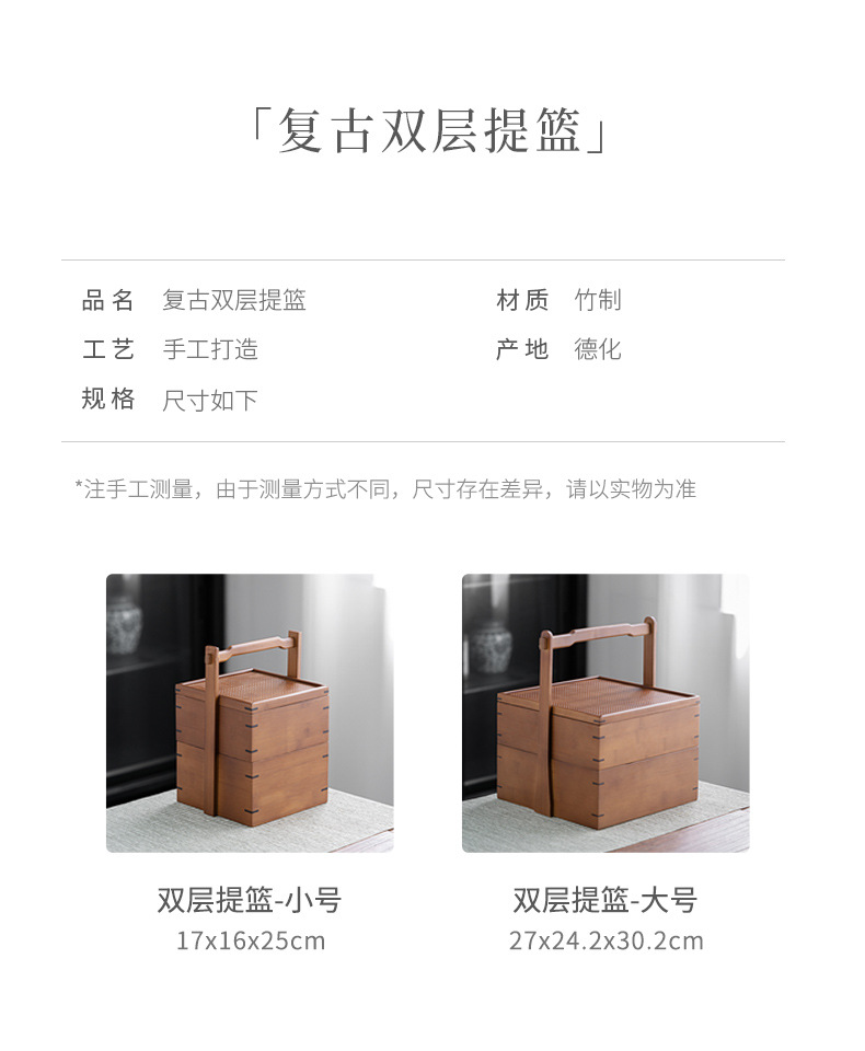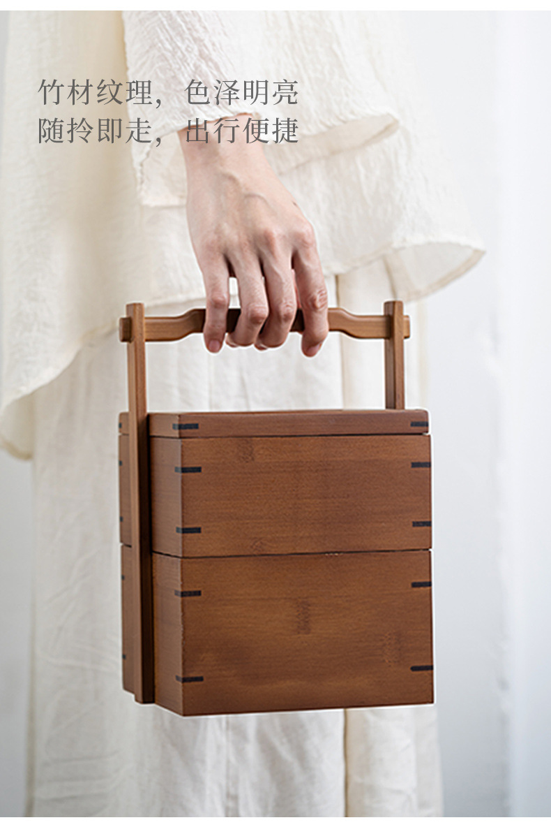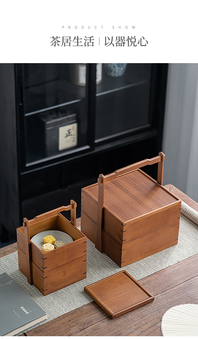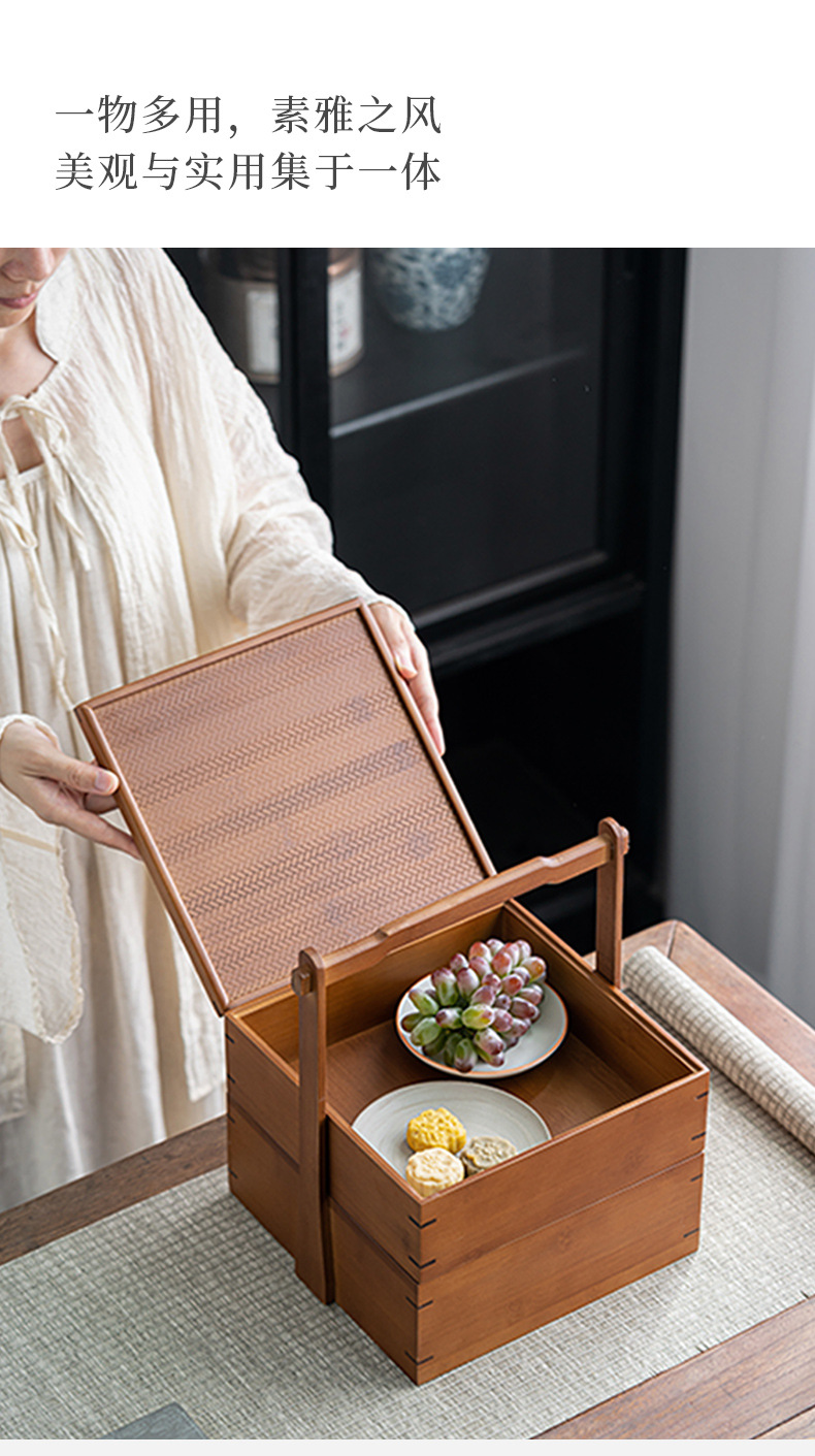 Ретро двухъярусная коробка для хранения закусок, китайская коробка для чая, бамбуковая переносная коробка, многоуровневая коробка для еды