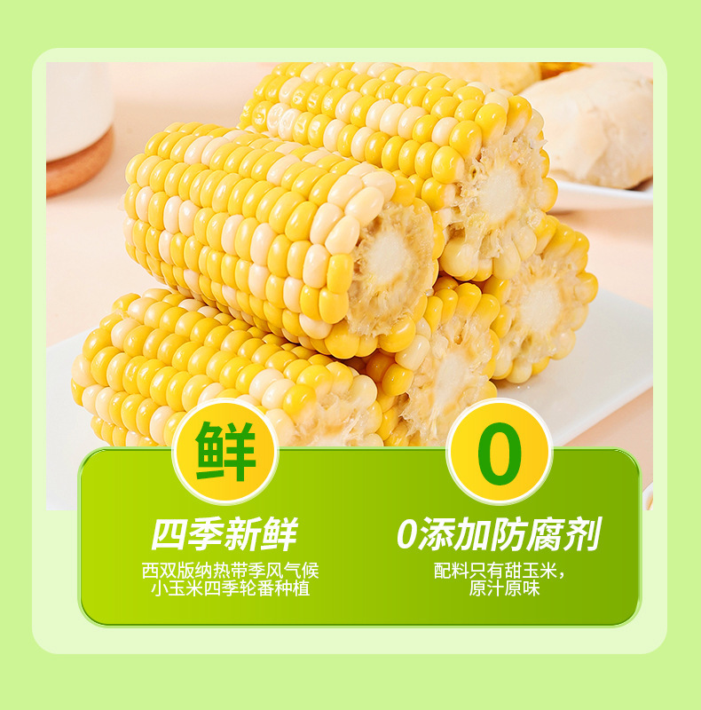 ![]() | Vacuum ready-to-eat sweet corn 1.5kg [about 14-16 pieces] fresh date: fruit sweet corn section | ¥24.5 / ≈ 295 ₽ | 6937 | 5452043569373 | |