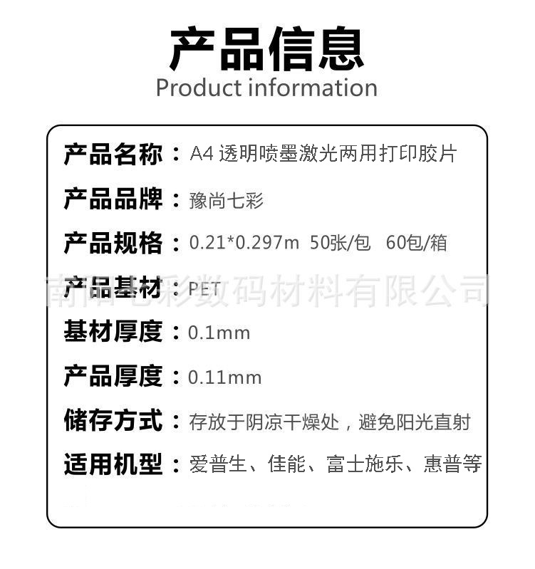 Транспарентная пленка A4 для кросс-бордерного экспорта, 11 шелковистых цветных пленок для черно-белой печати, пленка для проекции Ohp, для струйной и лазерной печати