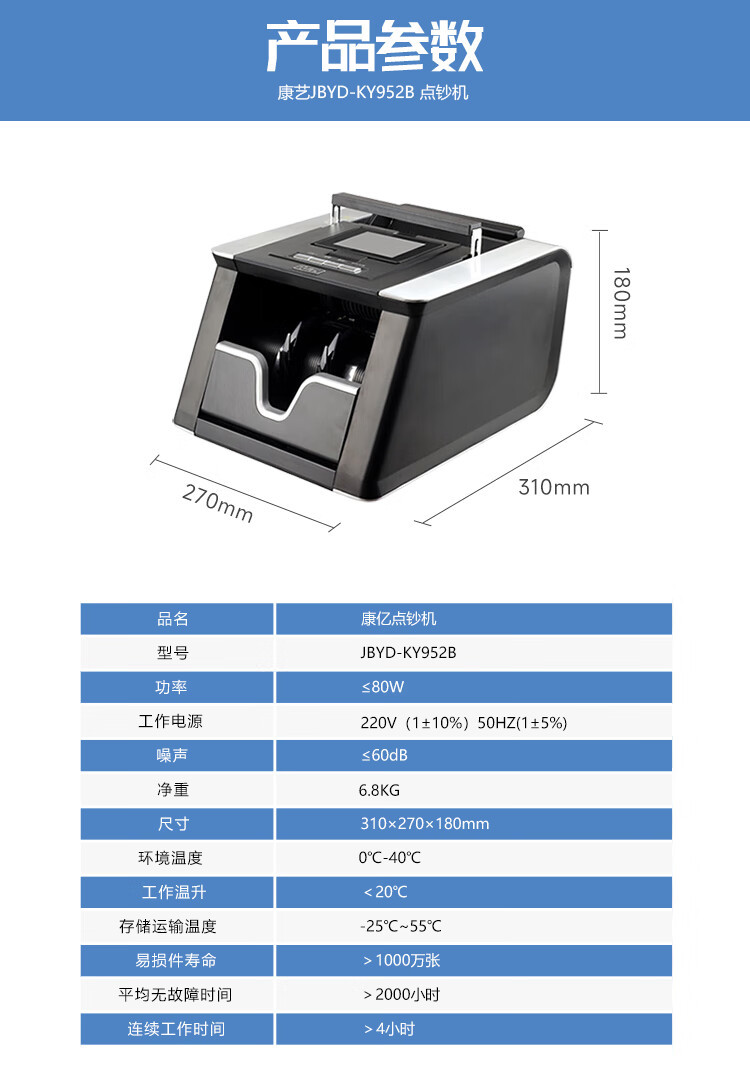 Счетчик банкнот Kang Yi JBYD-KY952 класс B для банков, коммерческий и домашний, с одним экраном