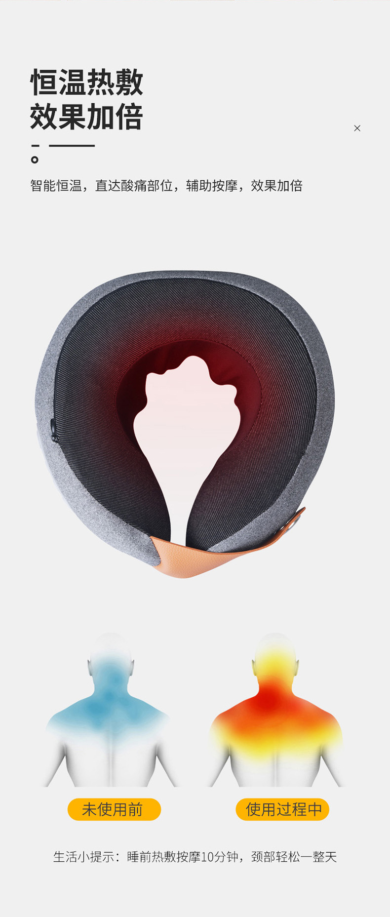 Кросс-бордерный домашний массажер для шейного отдела позвоночника с подогревом, портативная U-образная подушка для массажа в офисе