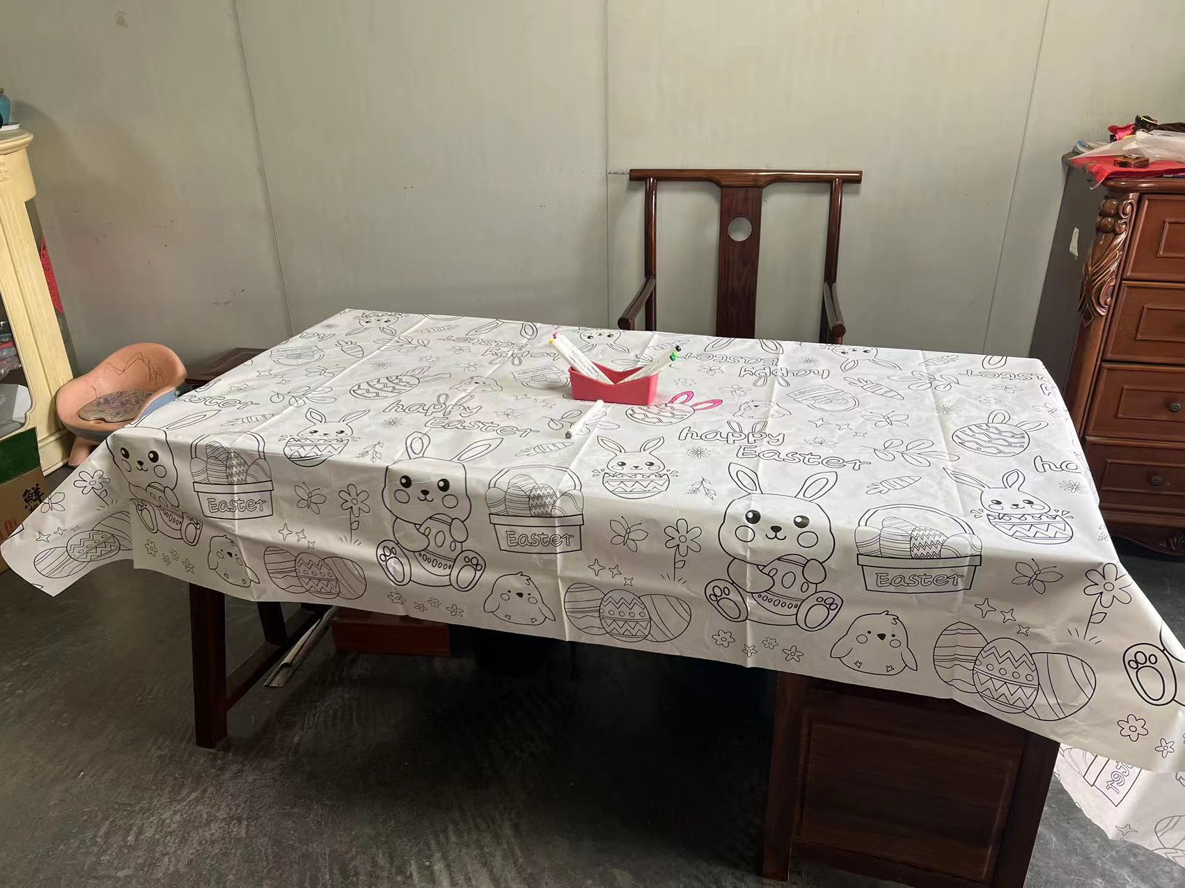 Одноразовая водонепроницаемая бумажная скатерть для детского праздника с раскраской