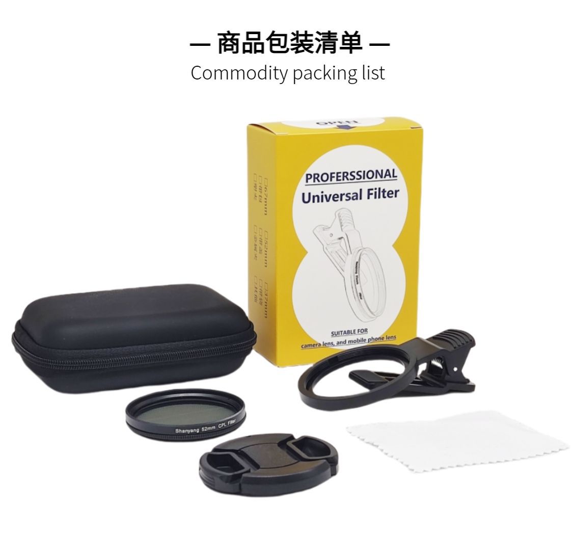 📦 | 52mm cpl polarizing filter + lens clip + cleaning cloth [pearl bag] | ¥13.59 / ≈ 164 ₽ | 19994 | 6102366131491 | |