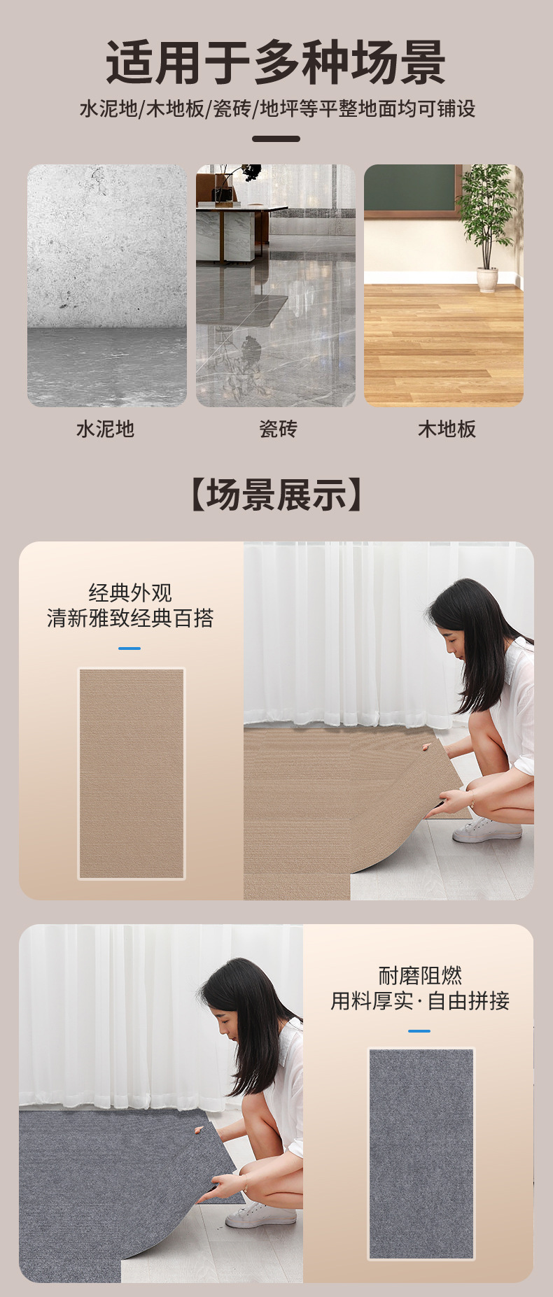 Самоклеящийся ковер офисный сплошной квадрат коммерческий большой площади полный спальни цементный пол прямой коврик