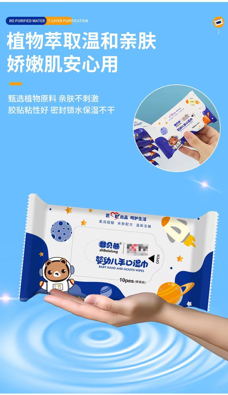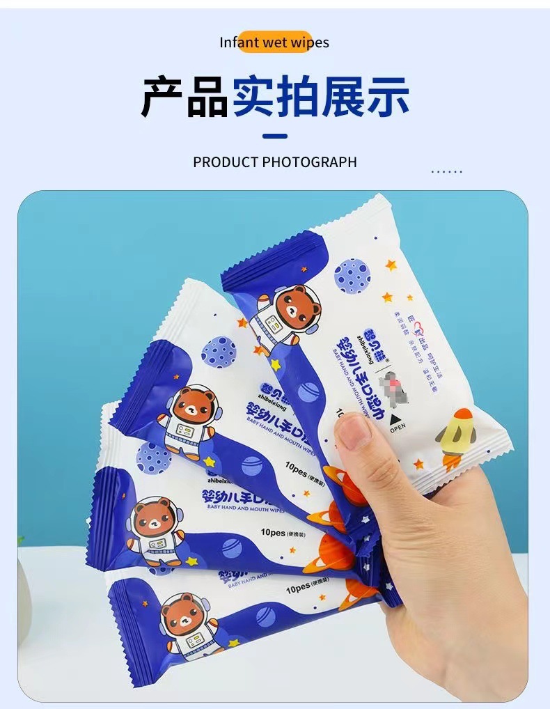 Детские салфетки 10 мини-паков для очистки рук и рта, необходимые в поездках, для студентов и домашних нужд