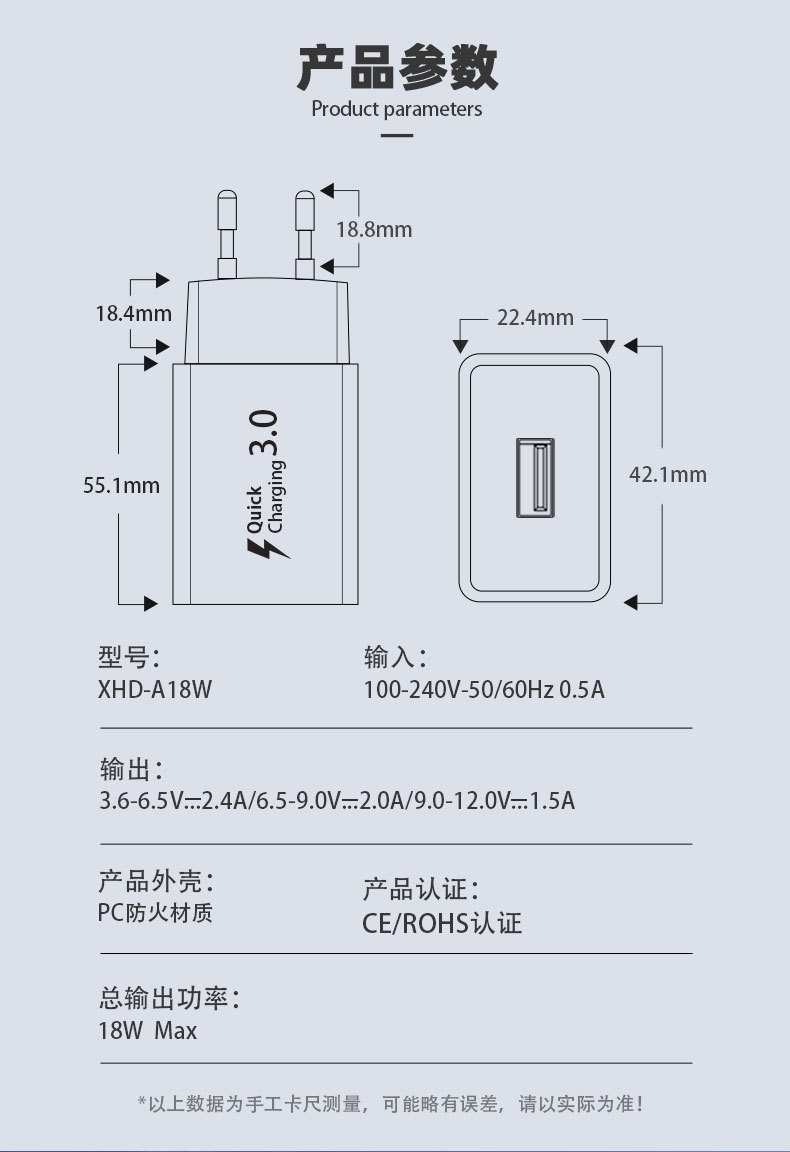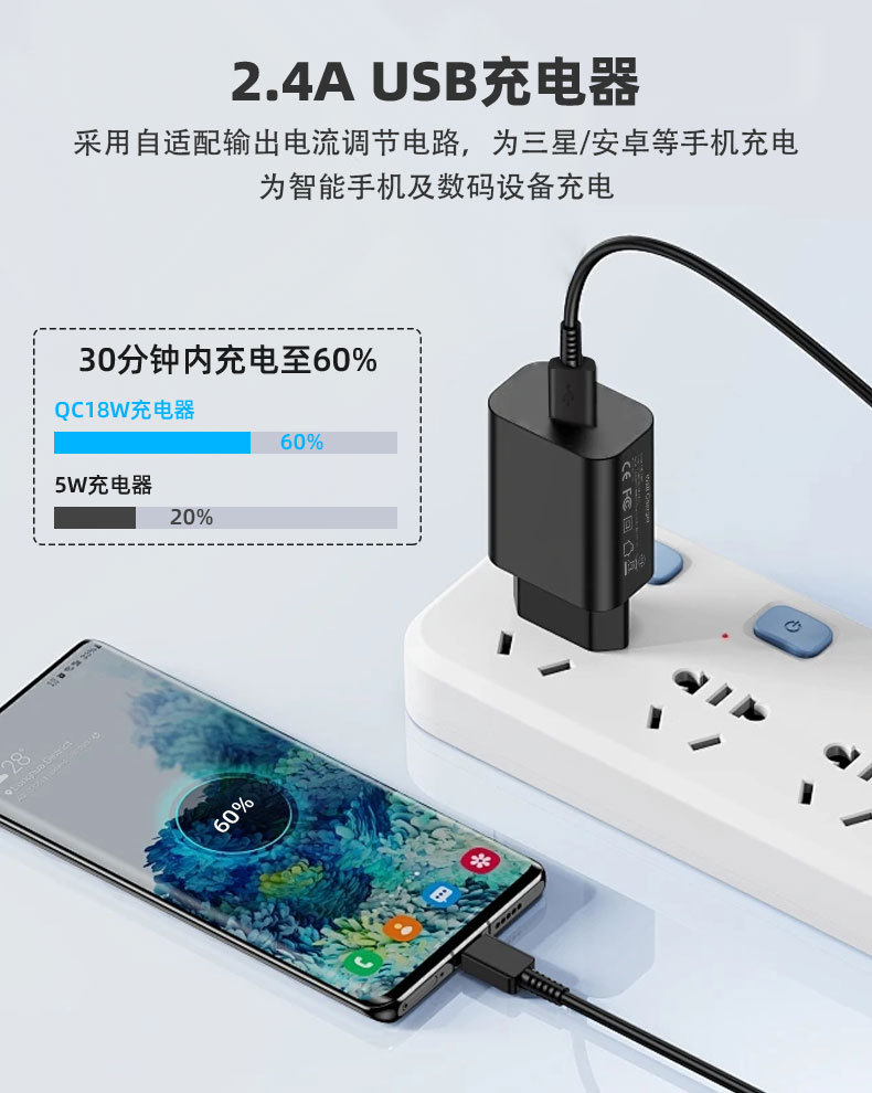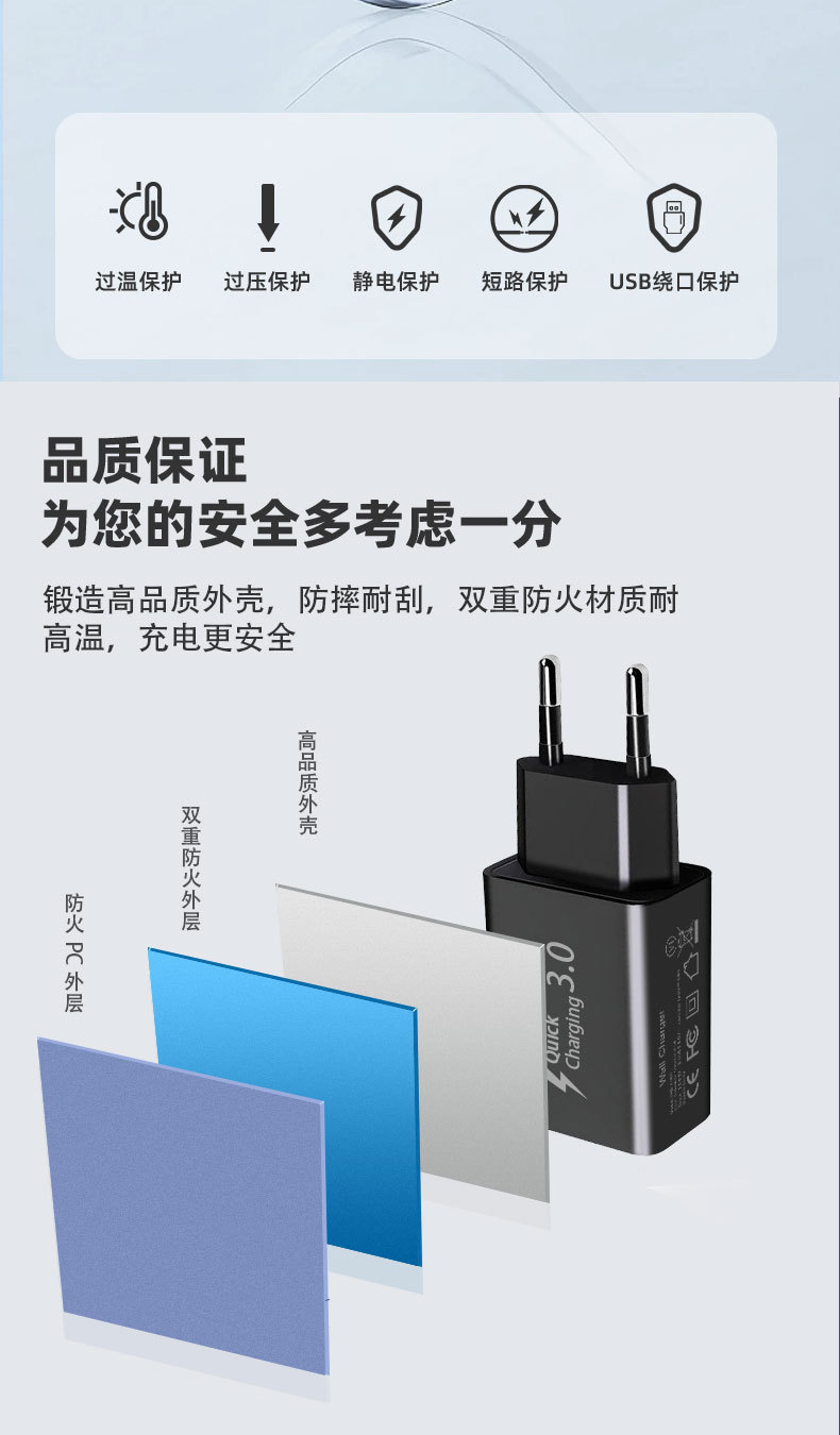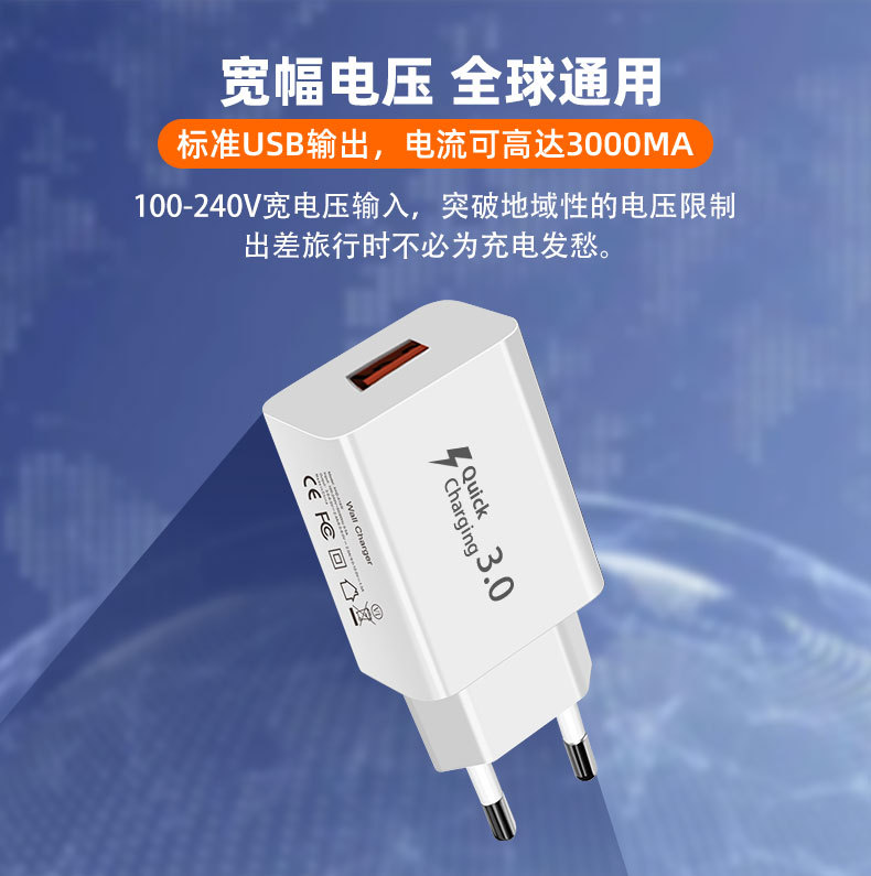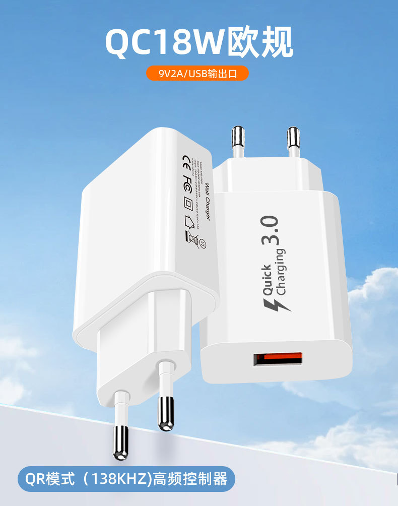Быстрая зарядная голова Qc18W Европейский стандарт Подходит для зарядного устройства Samsung S7S8S9 Apple 15 Быстрая зарядка USB Входной производитель