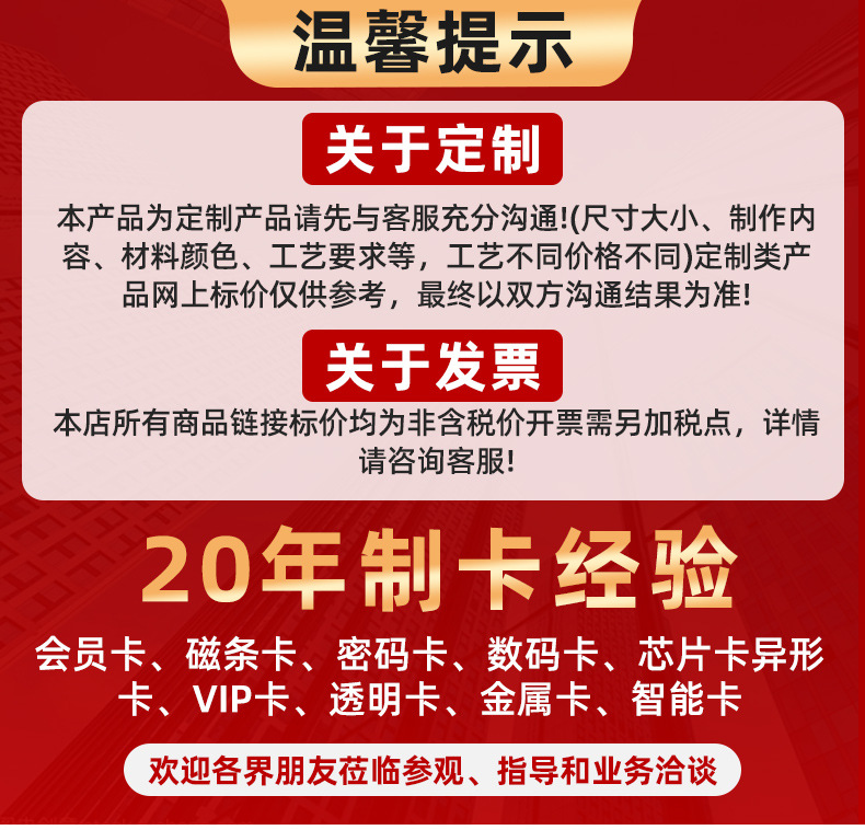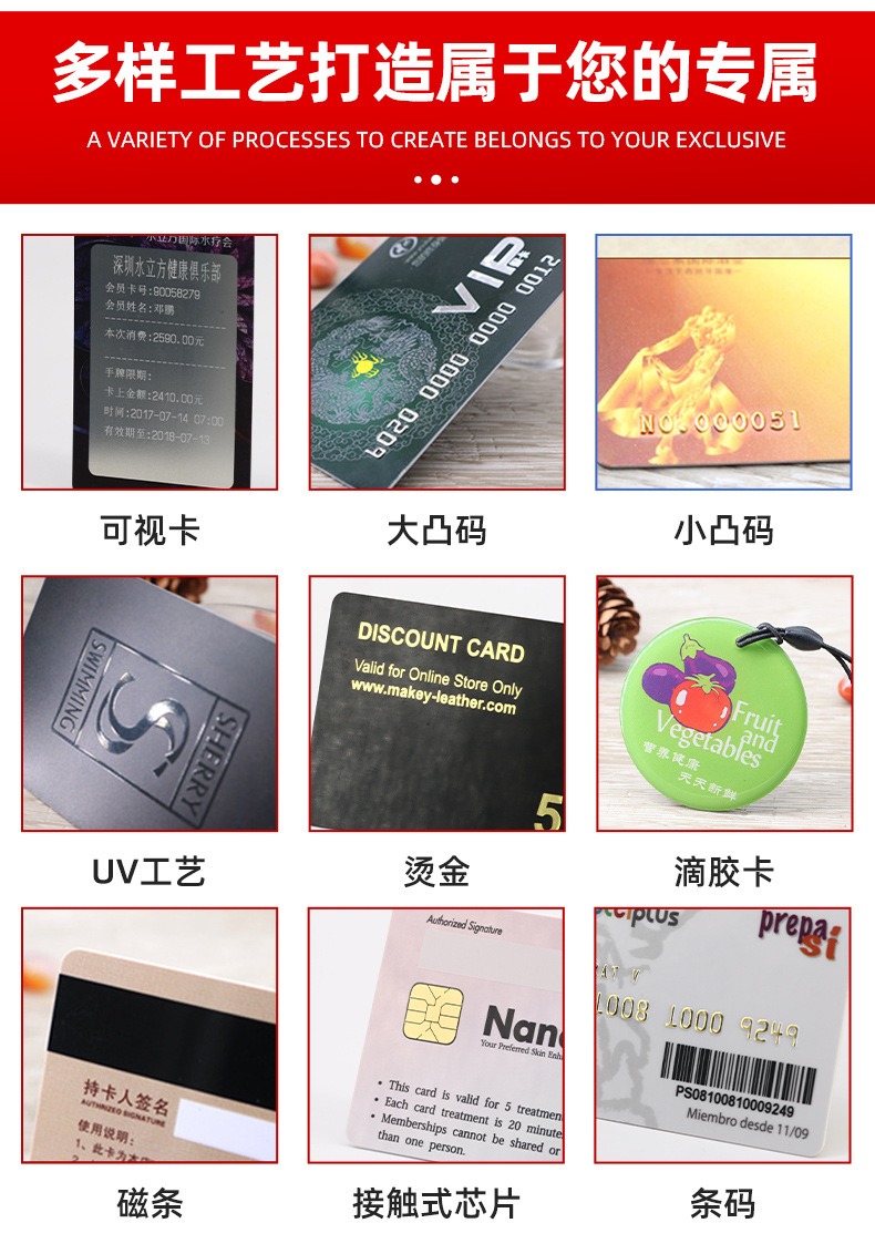 规格:标准卡尺寸:长×宽×厚:85.5×54×0.76(mm)非标准卡按客户图稿制作