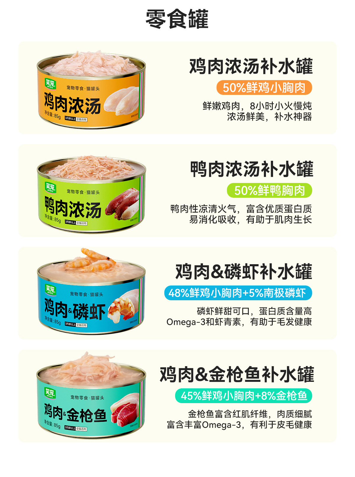 ![]() | 85g/can (early adopter pack) | Hydrating fresh stewed chicken can 170g | ¥3.5 / ≈ 41 ₽ | 49742 | 6101087254806 | |