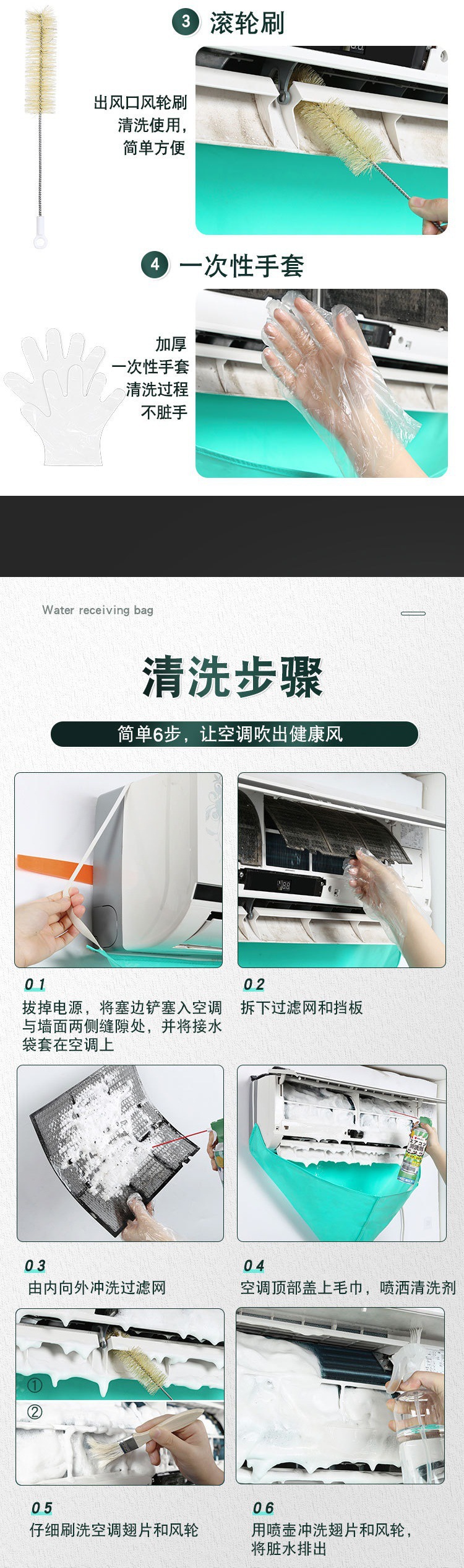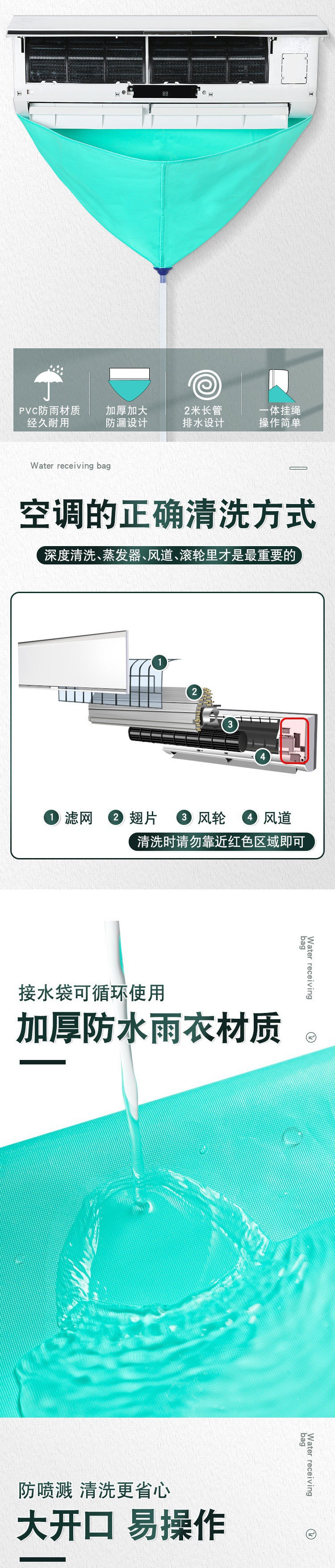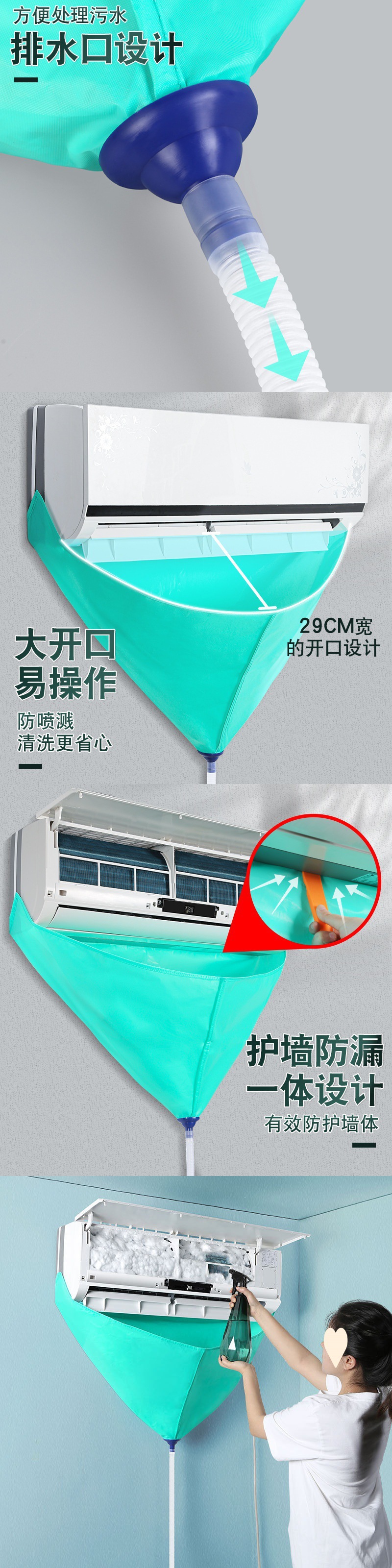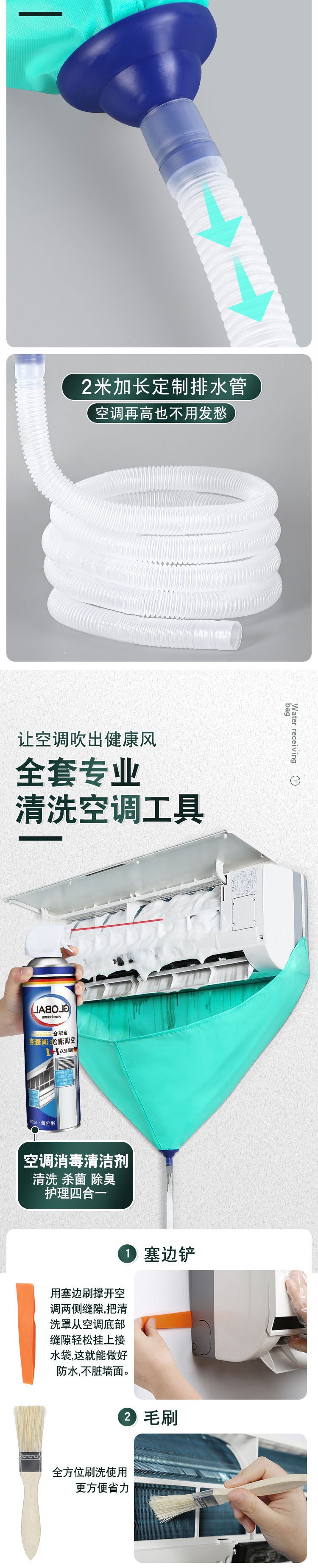 Комплект чистящих средств для кондиционеров без разборки, водонепроницаемая крышка, полный набор инструментов, водяная сумка для внутренних и внешних блоков, универсальный комплект очистки