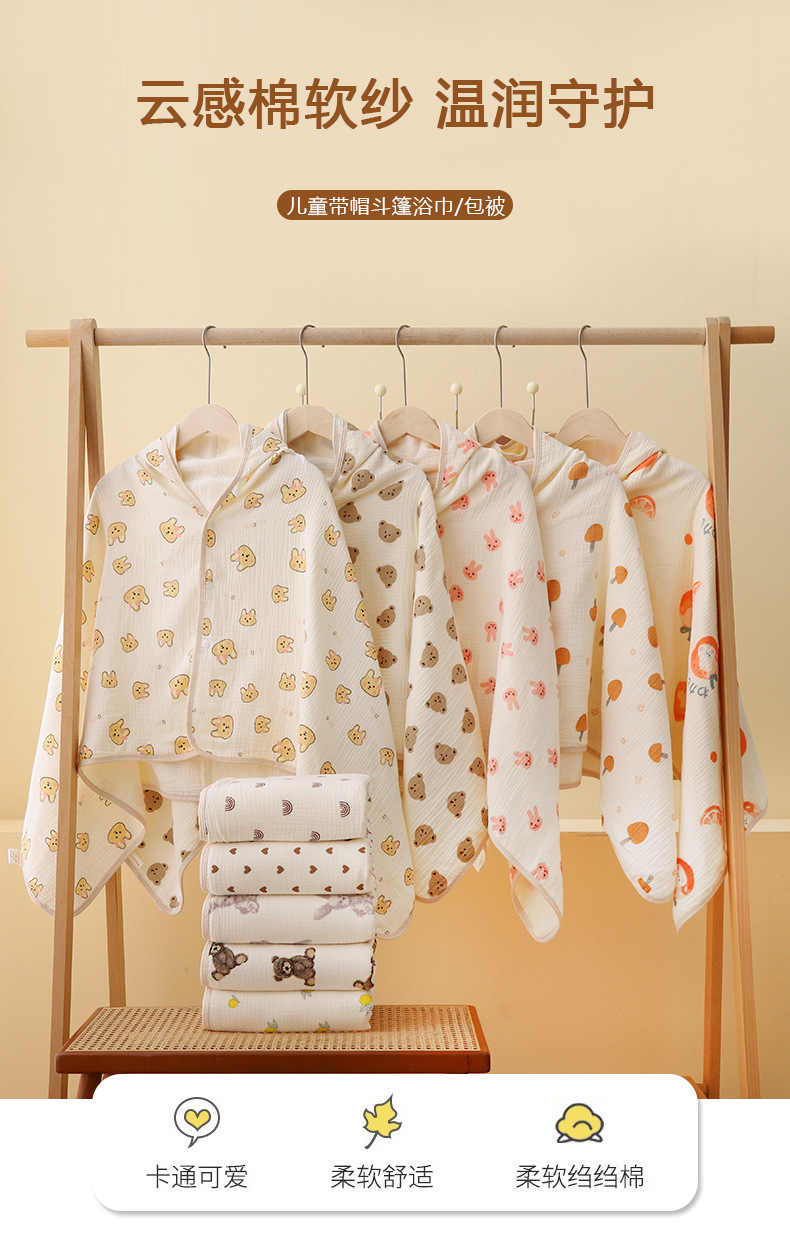 Пончо из ткани с эффектом морщин, хлопковое, для детей, с капюшоном, домашнее пончо, банное полотенце для купания