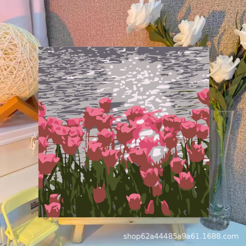 Цветочная цифровая масляная живопись DIY, раскраска, ручная роспись, пейзаж с тюльпанами, оптовая продажа