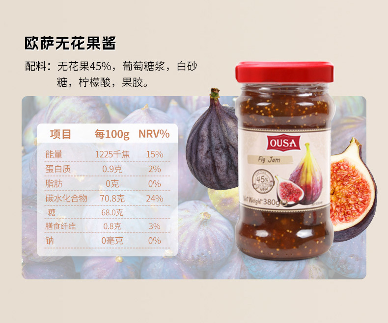 ![]() | Osa (fig) jam 380g | 2шт: ¥15.80, 4шт: ¥13.80, 12шт: ¥12.80 | 999 | 5470309521506 |