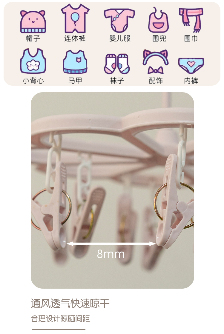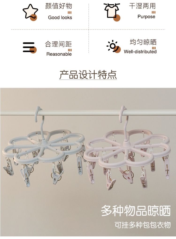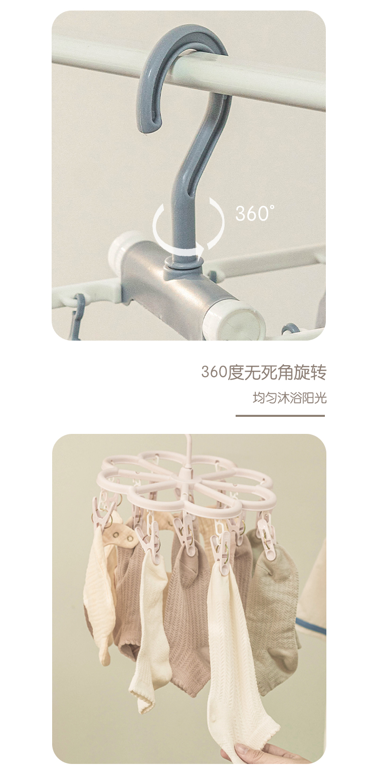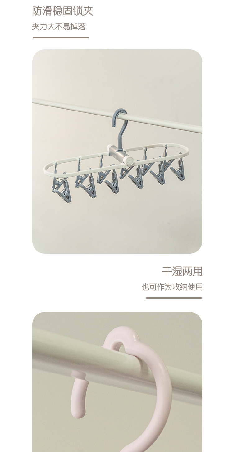 Сушилка Hongerkang с 12 зажимами и пластиковыми мульти-зажимами для сушки детских носок и нижнего белья, складная и удобная для хранения